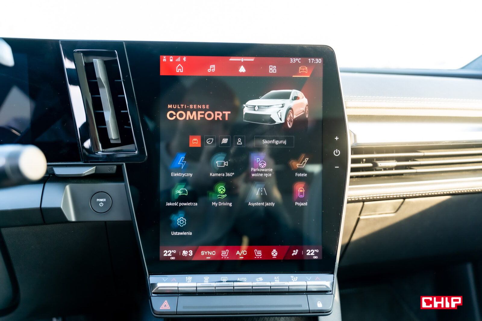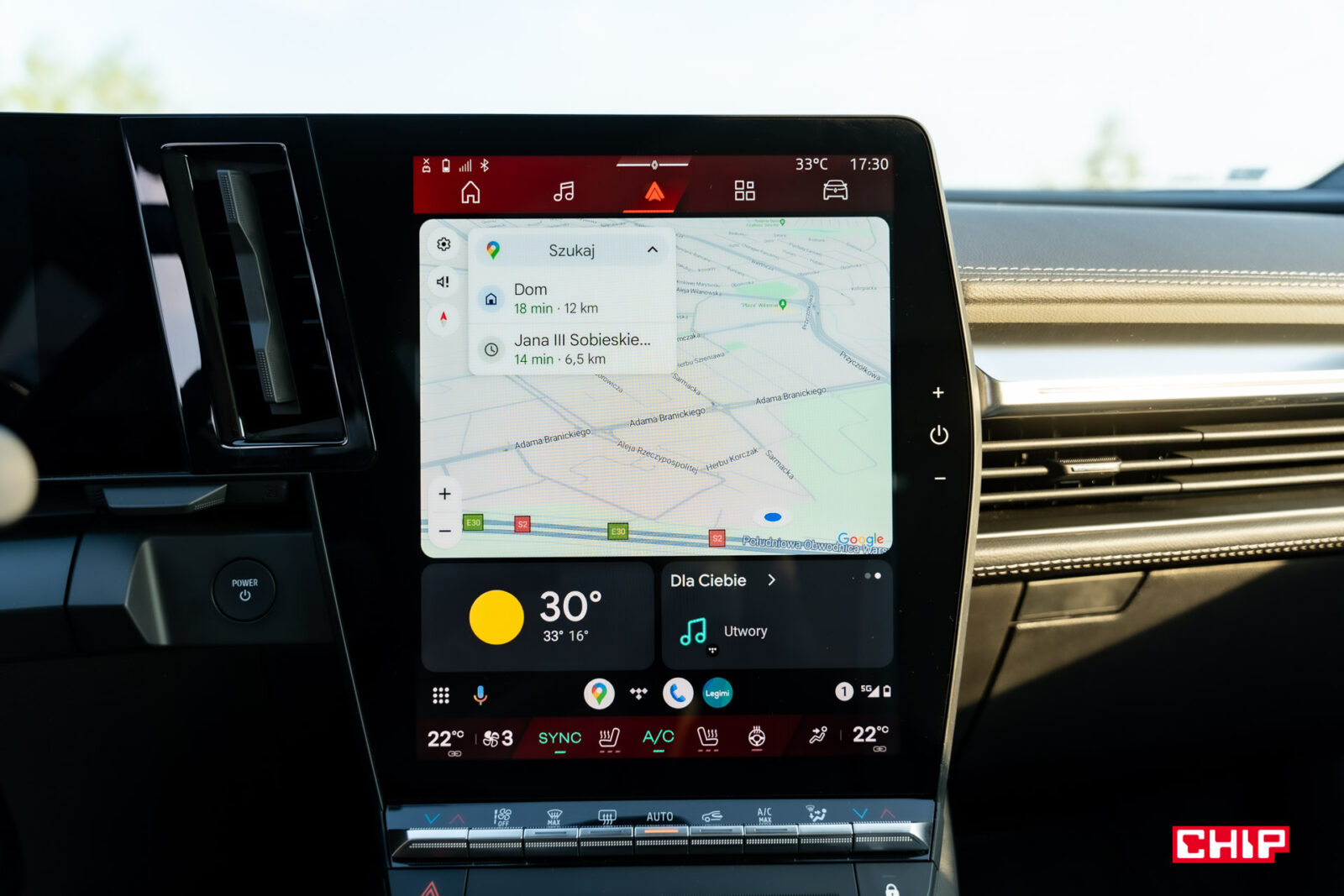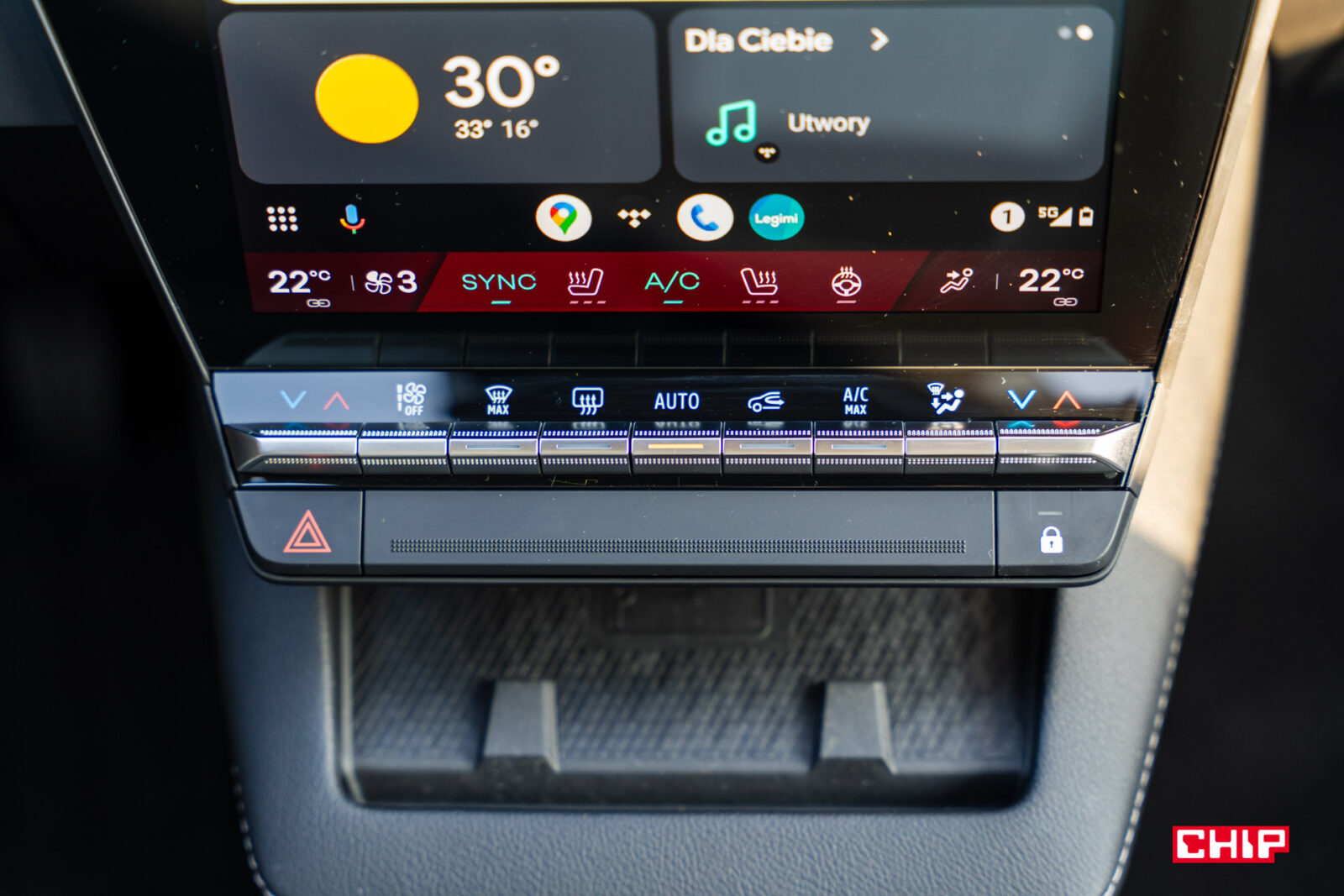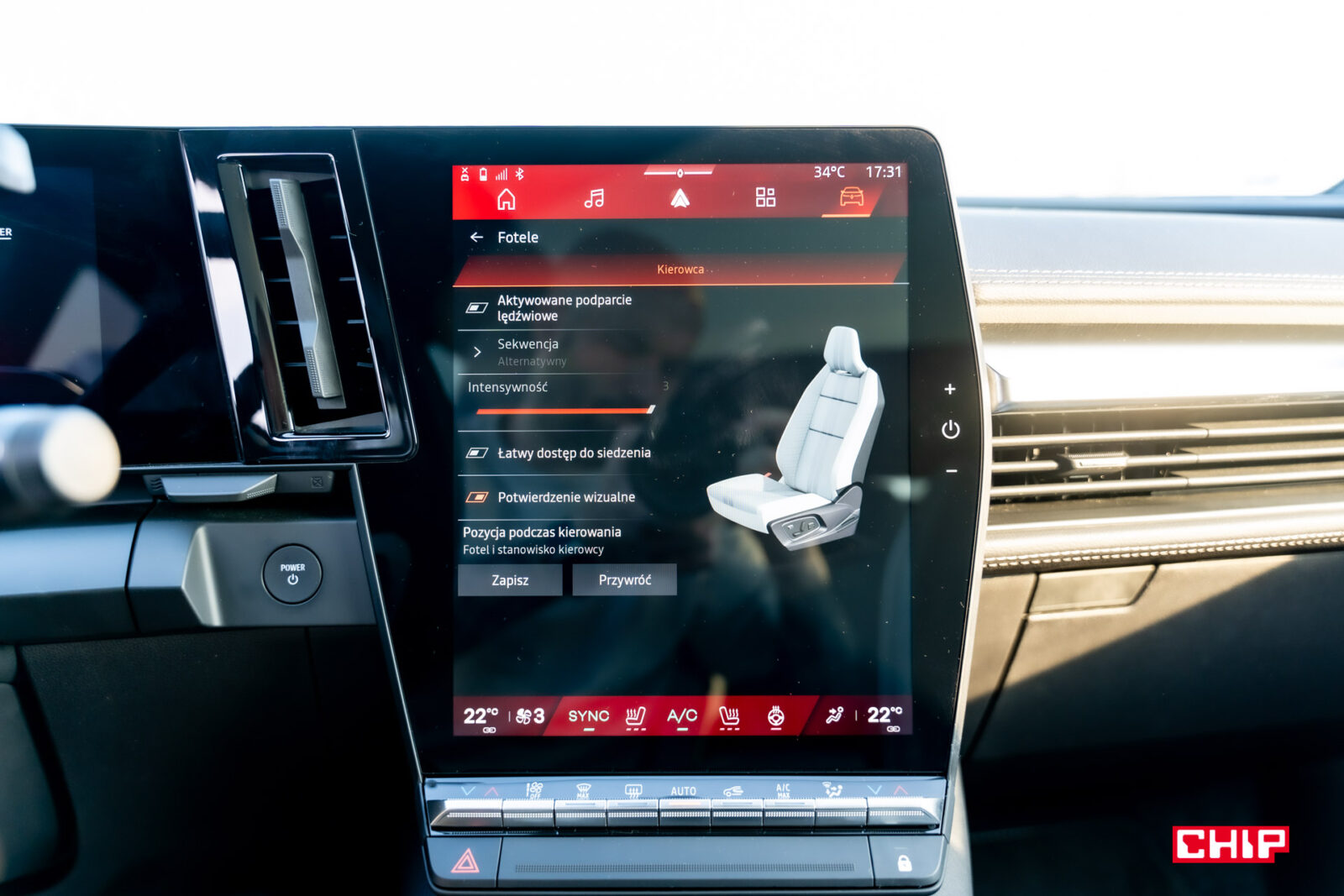 Nie ma tu elementów zbędnych, ale czy czegoś tu brakuje? W tej cenie mogłaby się pojawić elektryczna regulacja fotela pasażera i chyba nikt nie obraziłby się na fizyczne przyciski regulacji głośności. Tę możemy zmienić albo za pomocą dotykowych przycisków umieszczonych na prawo od ekranu głównego, albo przycisków na nieśmiertelnym pilocie, dla którego nie zabrakło miejsca pod kierownicą.