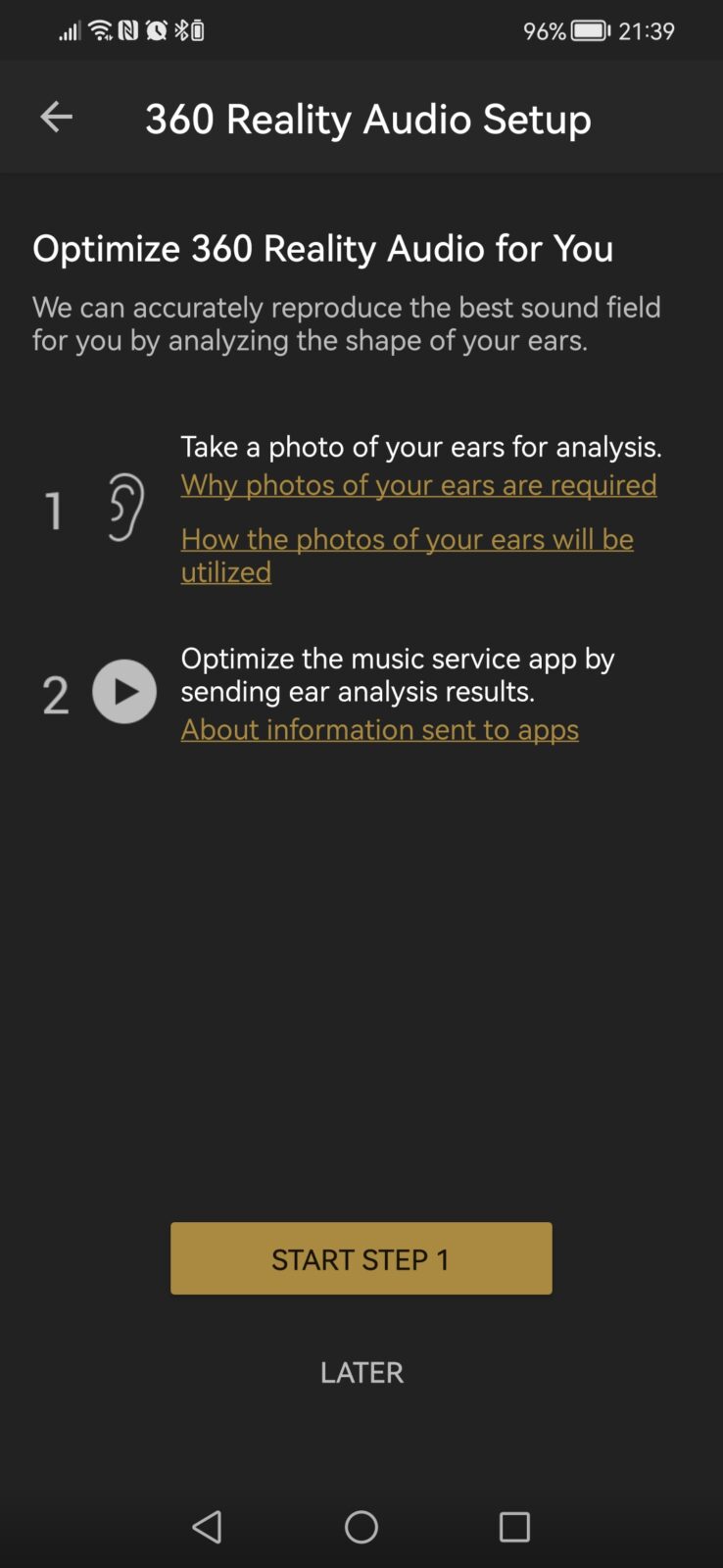 Następnie możemy zdecydować się również na uruchomienie trybu dźwięku 360 stopni. Nie jest to jednak proste i szybkie działanie. Konieczna będzie fotografia ucha, a następie przesłanie jej do aplikacji. Na bazie tego zostaną dostosowane odpowiednie ustawienia. Czy to działa? Muszę przyznać, że owszem – scena w tym trybie wydaje się znacznie powiększona, a dźwięki dochodzą ze wszystkich stron. Można poczuć się jak w centrum akcji.
