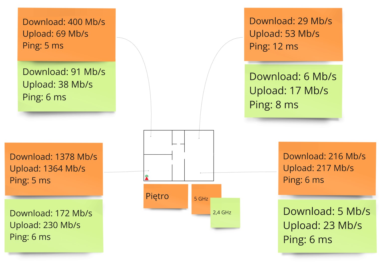 Wedle przeprowadzonych pomiarów zasięg, który ma do zaoferowania Archer BE3600 wypada przeciętnie. Na piętrze o wymiarach około 12×14 metrów wysoka prędkość jest osiągalna wyłącznie w tym samym pomieszczeniu, w którym znajduje się router, bo ledwie jedna ściana nośna ogranicza prędkość pobierania ponad trzykrotnie w przypadku 5-GHz pasma. Innymi słowy, jest to router odpowiedni wyłącznie do mieszkań o powierzchni około 50 metrów kwadratowych, bo wtedy jego centralne umiejscowienie powinno zapewnić dobre transfery.
