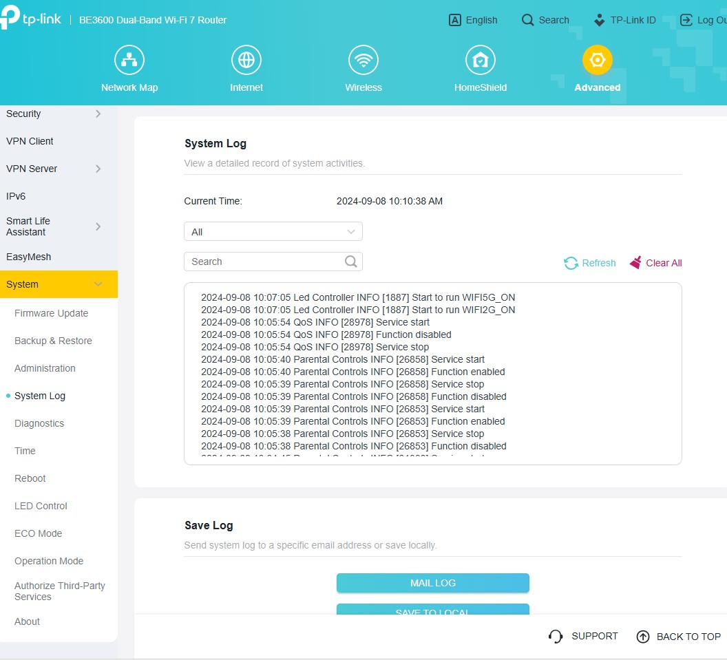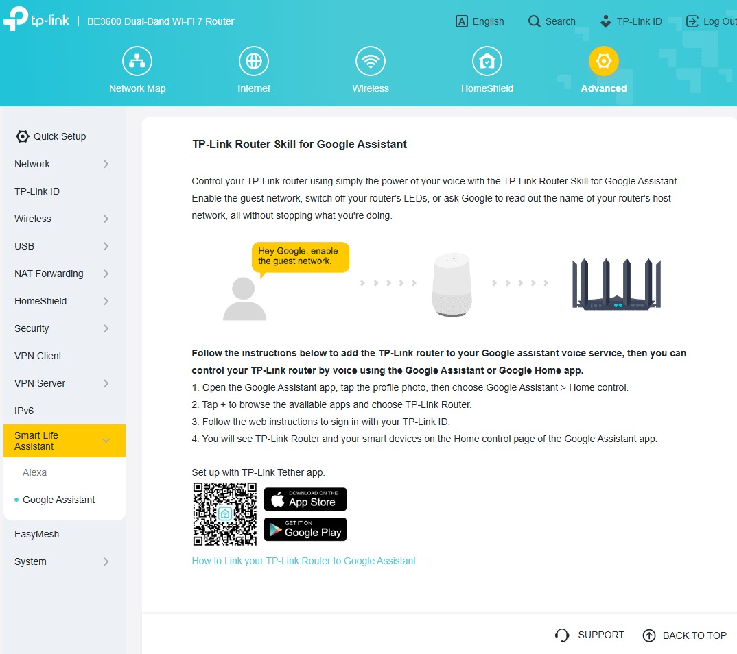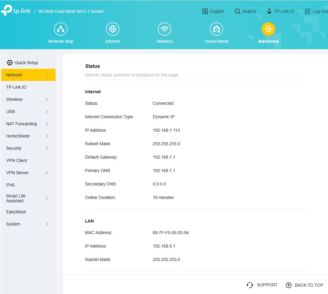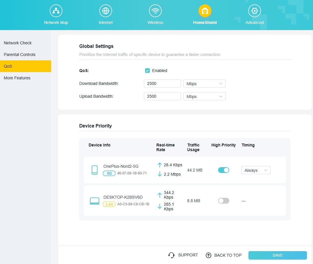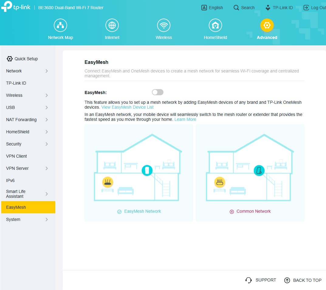 Archer BE3600 można skonfigurować zarówno z poziomu aplikacji, jak i tradycyjnej “strony serwisowej” w przeglądarce, która zapewnia znacznie więcej opcji, jako (poniekąd) tryb zaawansowany wszelkich ustawień. Znajdziecie w nim całą masę użytecznych funkcji, ale TP-Link najbardziej akcentuje wsparcie domowej sieci Wi-Fi Mesh, czyli bardzo prostego tworzenia jednej sieci Wi-Fi z użyciem kilku routerów, wspierających EasyMesh oraz obsługę HomeShield, a więc zestaw funkcji do dbania o bezpieczeństwo sieci, kontrolowania użytkowników oraz nadawania priorytetów sieciowych konkretnym urządzeniom.