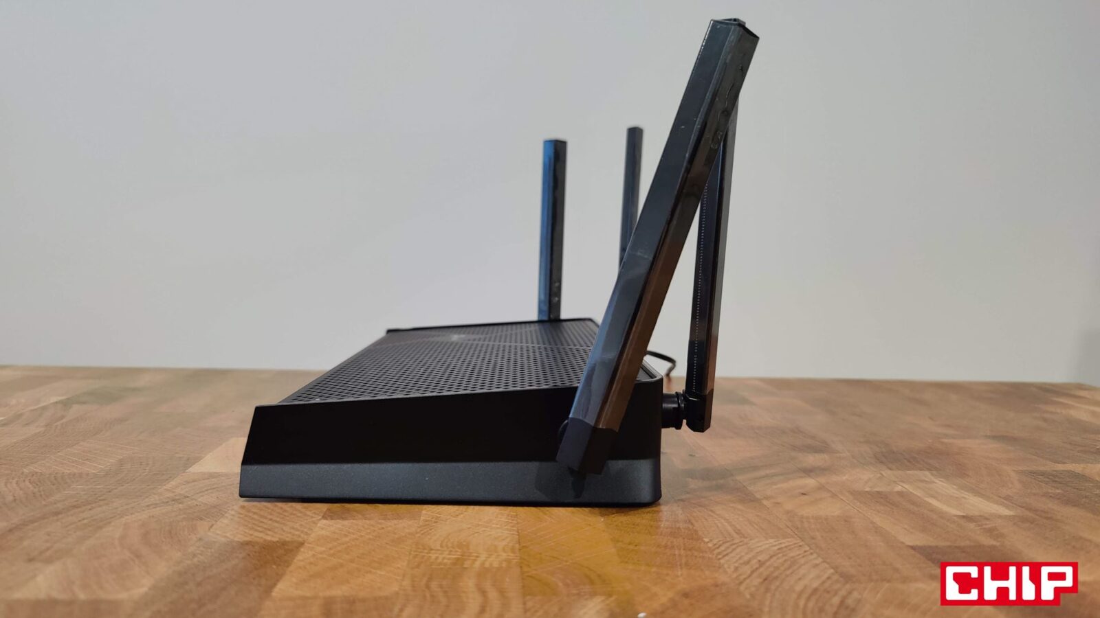 Prosty, a ładny, choć sprowadzający się do ot zwężanemu ku dołowi prostopadłościanu. Archer BE3600 ewidentnie nie ma zamiaru sprawić, że będziecie rozpływać się nad jego designem, ale jego minimalistyczną formę, mającą chyba zamiar przyprawić trypofobia o zawał serca, można polubić. Zwłaszcza jeśli planujecie montaż routera na ścianie (musicie zadbać o dwa własne wkręty), bo te niezasłonięte z prawej strony magnesy kurzu dziurki na górnym panelu znalazły się tam nie bez powodu, a z racji dbałości o utrzymywanie przepływu powietrza między obudową a układami obliczeniowymi. Takie czasy, że nawet routery trzeba odpowiednio chłodzić.