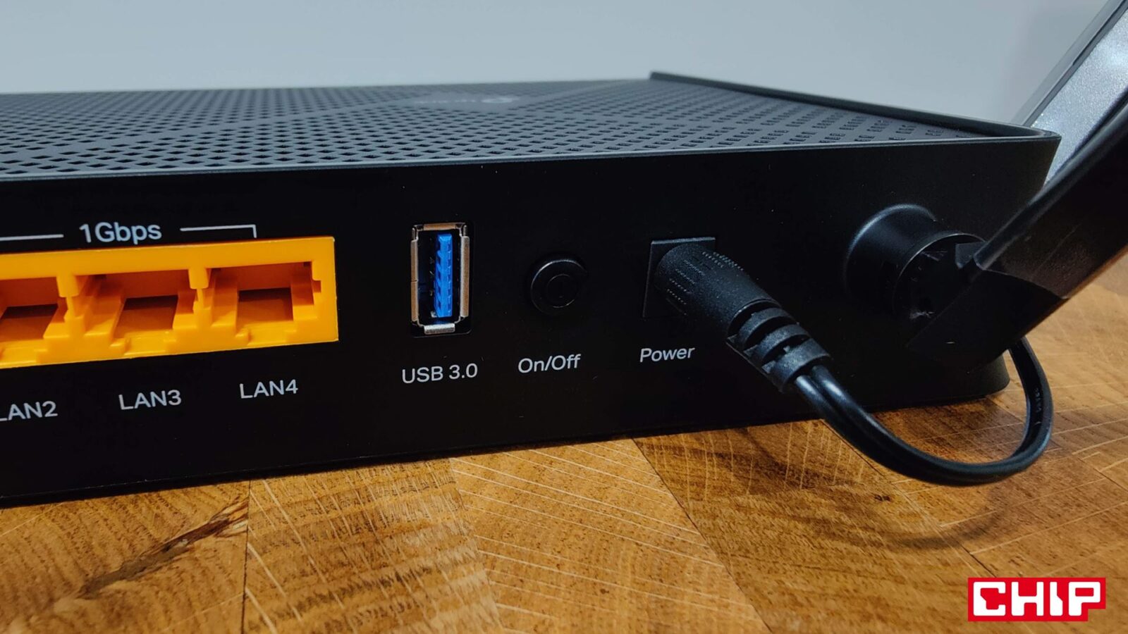 Na tylnej krawędzi znajdziecie z kolei już nie taki typowy zestaw portów. Producent zdecydował się na złącze zasilania, cztery porty LAN, z czego jeden obsługuje prędkość 2,5 Gb/s oraz port WAN 2,5 Gb/s, a dodatkowo port USB 3.0 i nie jest to wcale port serwisowy, a obsługujący zewnętrzne dyski, dzięki czemu router jest w stanie zapewnić wam uproszczony domowy serwer NAS zarówno dostępny lokalnie, jak i przez Internet. TP-Link dodał też w ten sektor przycisk on/off, aktywacji i dezaktywacji diod, trybu WPS i Wi-Fi oraz oczywiście ukryty przycisk resetowania routera do ustawień fabrycznych.