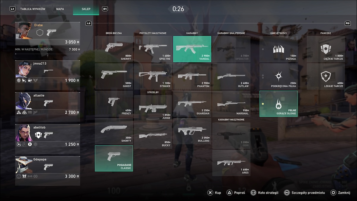 Rozgrywka w Valorant jest podzielona na rundy, w których zespoły na zmianę atakują i bronią. Kluczowym elementem każdej rundy jest zarządzanie ekonomią drużyny — i tu element z produkcji Valve, bo przed jej rozpoczęciem możemy kupować broń i umiejętności za kredyty zdobyte w trakcie meczu. Wybór odpowiedniego ekwipunku może zdecydować o przebiegu rundy, więc warto eksperymentować z różnymi broniami i dostosowywać je do stylu gry i sytuacji na mapie, ale również naszych preferencji (ja jednak muszę przyznać, że kierowałem się głównie hasłem „buy Vandal”). Zależnie od tego, czy obecnie atakujemy, czy bronimy, w każdej rundzie istotne jest to, czy uda się podłożyć Spike’a i doprowadzić do jego detonacji, czy może skutecznie go rozbroić.