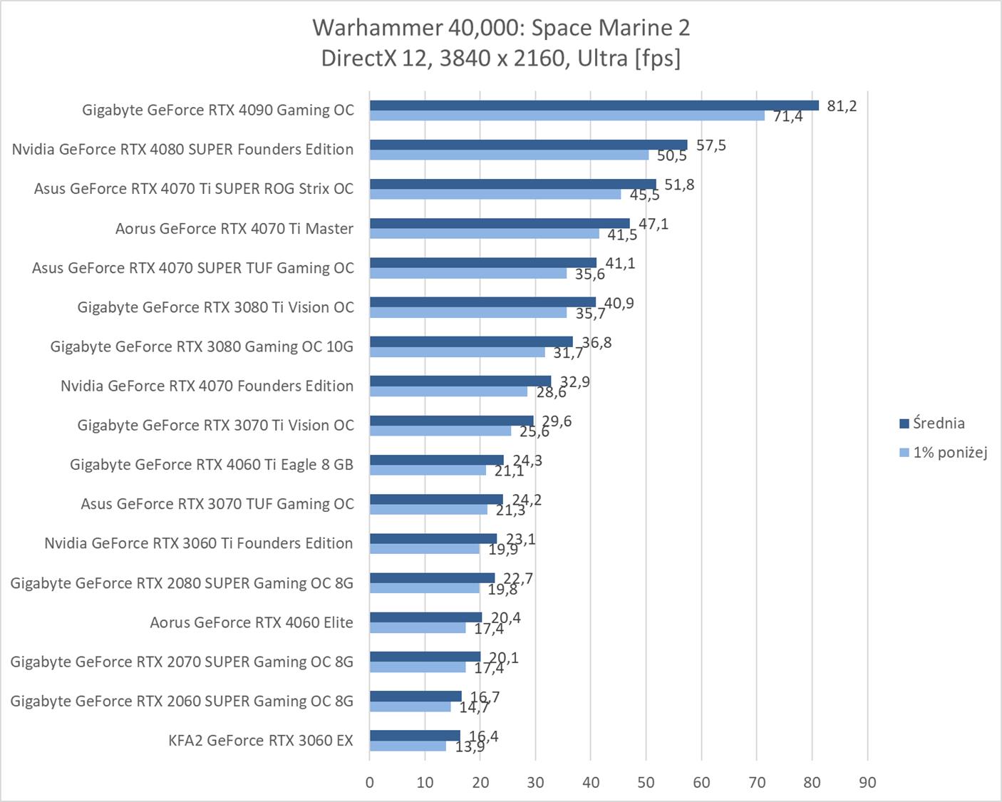 Test wydajności kart graficznych Nvidia w Warhammer 40,000: Space Marine 2 – podsumowanie
