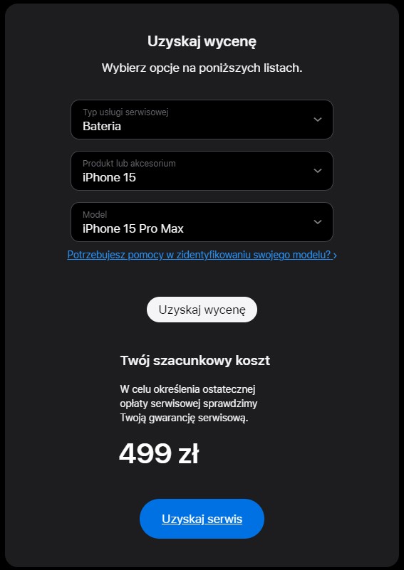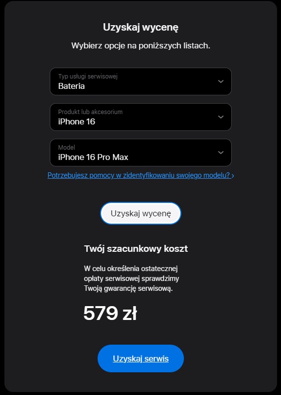 Oczywiście w przypadku serii iPhone 16 raczej nikogo jeszcze nie obchodzą ceny serwisu, zwłaszcza baterii, ale z drugiej strony warto takie kwestie wiedzieć wcześniej. Zwłaszcza że Apple zafundował nam kolejną podwyżkę kosztów naprawy. Obecnie wymiana baterii w modelach Pro i Pro Max z serii iPhone 14 i 15 to koszt 499 złotych. Tymczasem w przypadku iPhone’a 16 Pro i Pro Max za tę „przyjemność” trzeba już zapłacić 579 złotych. Jest to wzrost o około 16%. Jeśli chodzi o dwa pozostałe smartfony, tutaj koszt wciąż wynosi 499 złotych.
