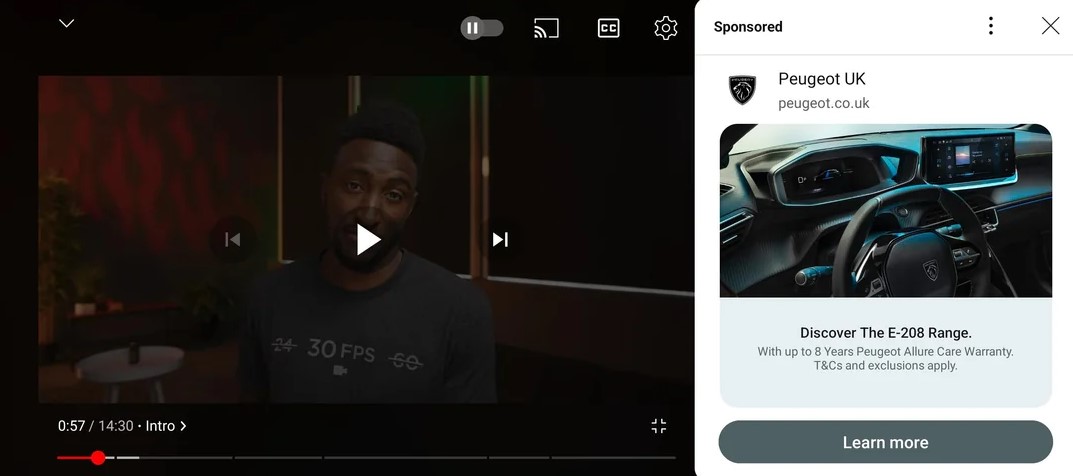Niedawno użytkownicy YouTube’a zaczęli zauważać, że po zapauzowaniu filmu ekran trochę się zmienia. Okno z filmem zmniejsza się i zostaje przesunięte na lewą stronę, podczas gdy z prawej pojawia się baner reklamowy. Google potwierdził w rozmowie z The Verge, że takie rozwiązanie naprawdę zostanie wdrożone w serwisie. Także wcześniej w tym roku dyrektor ds. biznesowych Google, Philipp Schindler, stwierdził, iż taki sposób wyświetlania reklam jest niezwykle popularny wśród reklamodawców.