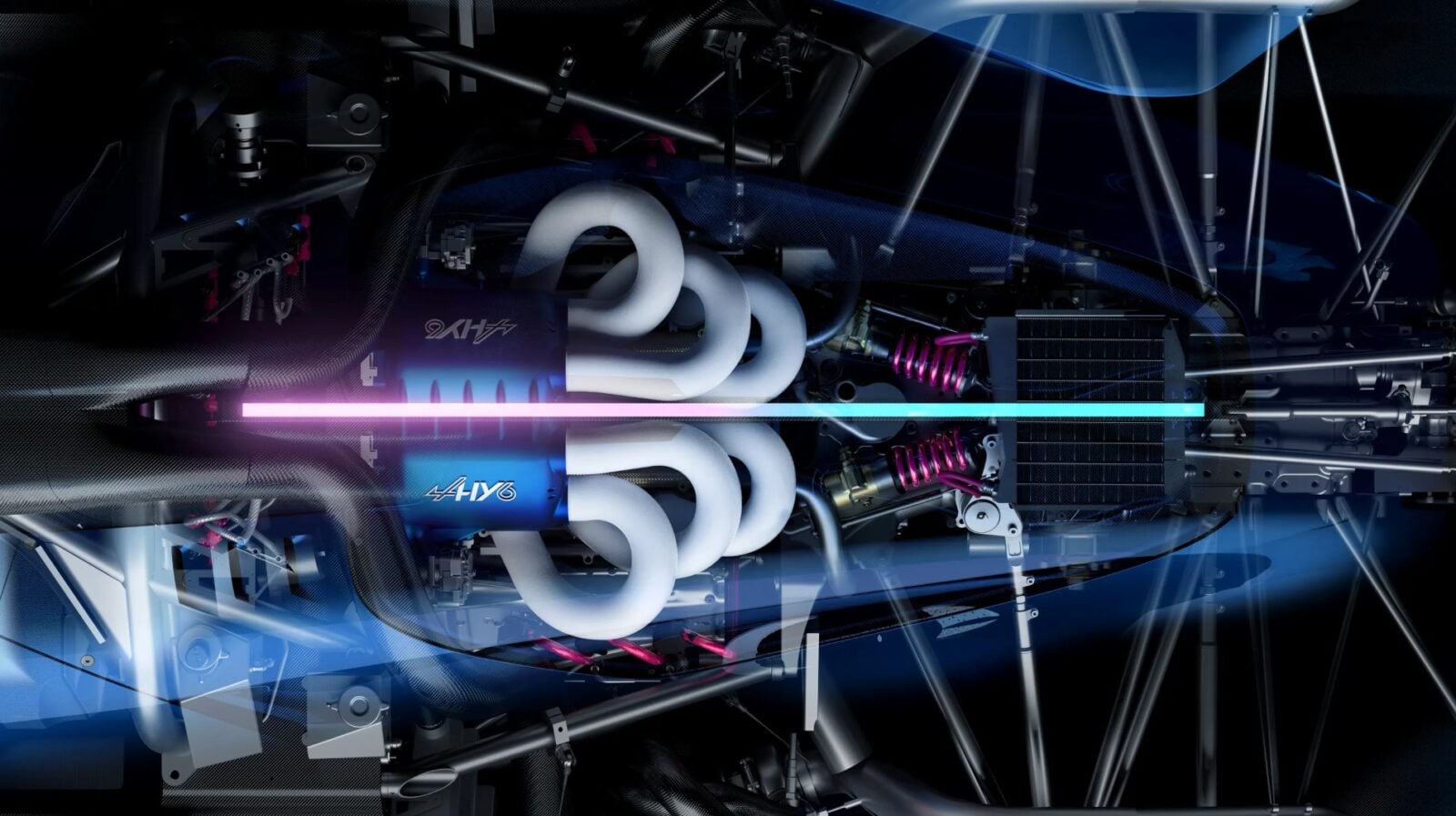 To, co wyróżnia silnik Hy6, to jego specjalna konstrukcja, która została zaprojektowana od podstaw do spalania wodoru, a nie przerobiona wersja silnika benzynowego. Blok wykonano z litego aluminium, a układ smarowania z suchą miską olejową zapewnia niski środek ciężkości, co jest akurat kluczowe dla osiągów na torze, bo silnik ten powstał z myślą o sporcie, a nie codziennym użytkowaniu. Zespół inżynierów Alpine zoptymalizował też komorę spalania, tworząc turbulentny przepływ powietrza, aby zapewnić jednorodną mieszankę paliwową, co z kolei minimalizuje ryzyko przedwczesnego zapłonu i detonacji, które są powszechnymi problemami przy spalaniu wodoru. Zastosowali też pośredni wtrysk wody, zwiększający efektywność poprzez regulowanie mieszanki w celu uzyskania płynnej i niezawodnej pracy przy wysokich obrotach.