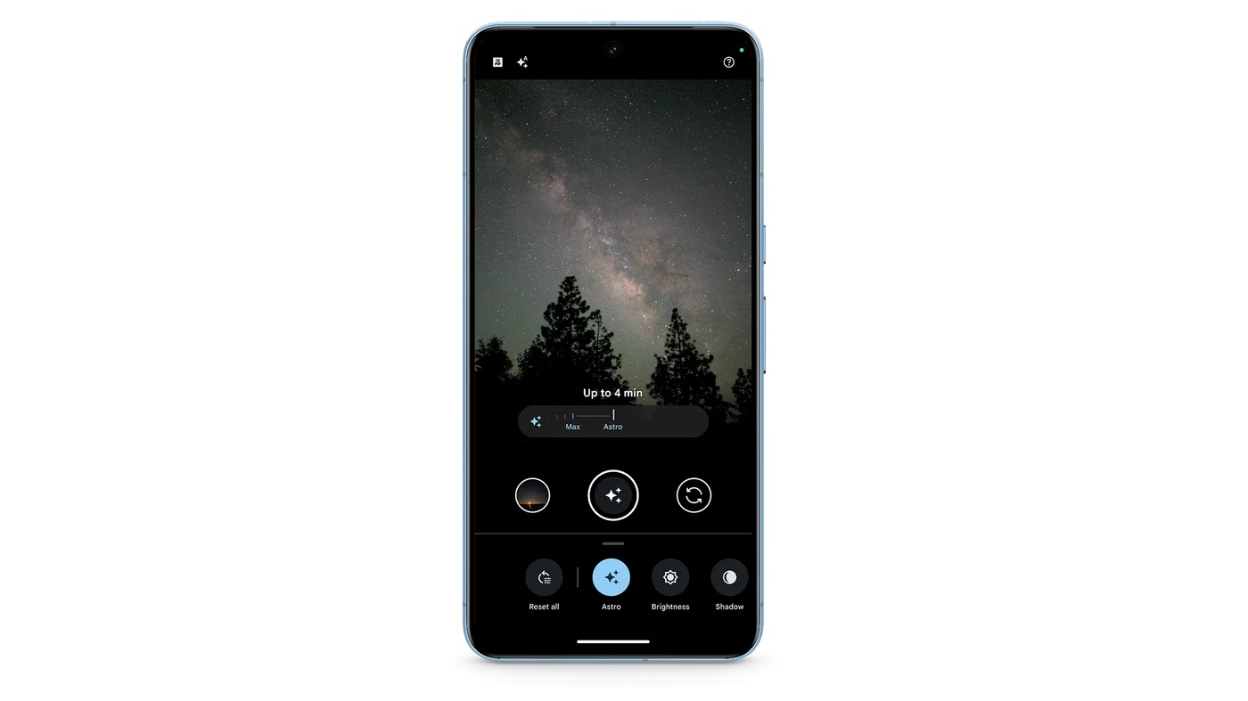 Lepsze zdjęcia dostaniemy też w trybie nocnym i jest to nowość dla wszystkich smartfonów, od Pixela 6 w górę. Tryb zdjęć nocnych pozwoli nam skorzystać z trybu astrofotografii. Po wciśnięciu przycisku migawki mamy pięć sekund na ułożenie smartfonu z aparatem skierowanym w stronę nieba i… reszta już zrobi się sama.