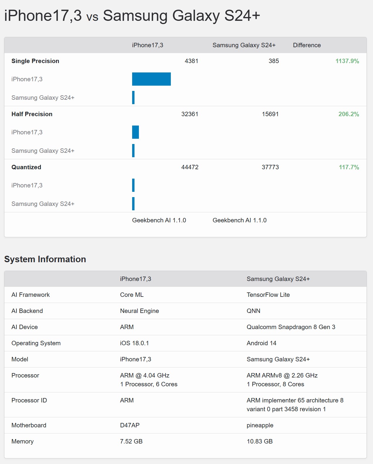 Apple A18 jednak najbardziej błyszczy w testach AI, osiągając wyniki od 2 do 7× lepsze niż Tensor 4 i zwyciężając bez problemu ze Snapdragonem. Leży tu ogromny potencjał, trudno jednak przewidywać, jak przełoży się to na praktyczną użyteczność iPhone’a 16, skoro pełną wersję Apple Intelligence zobaczymy dopiero w przyszłym roku. Może jednak się okazać, że czysta żywa moc CPU zejdzie na drugi plan.