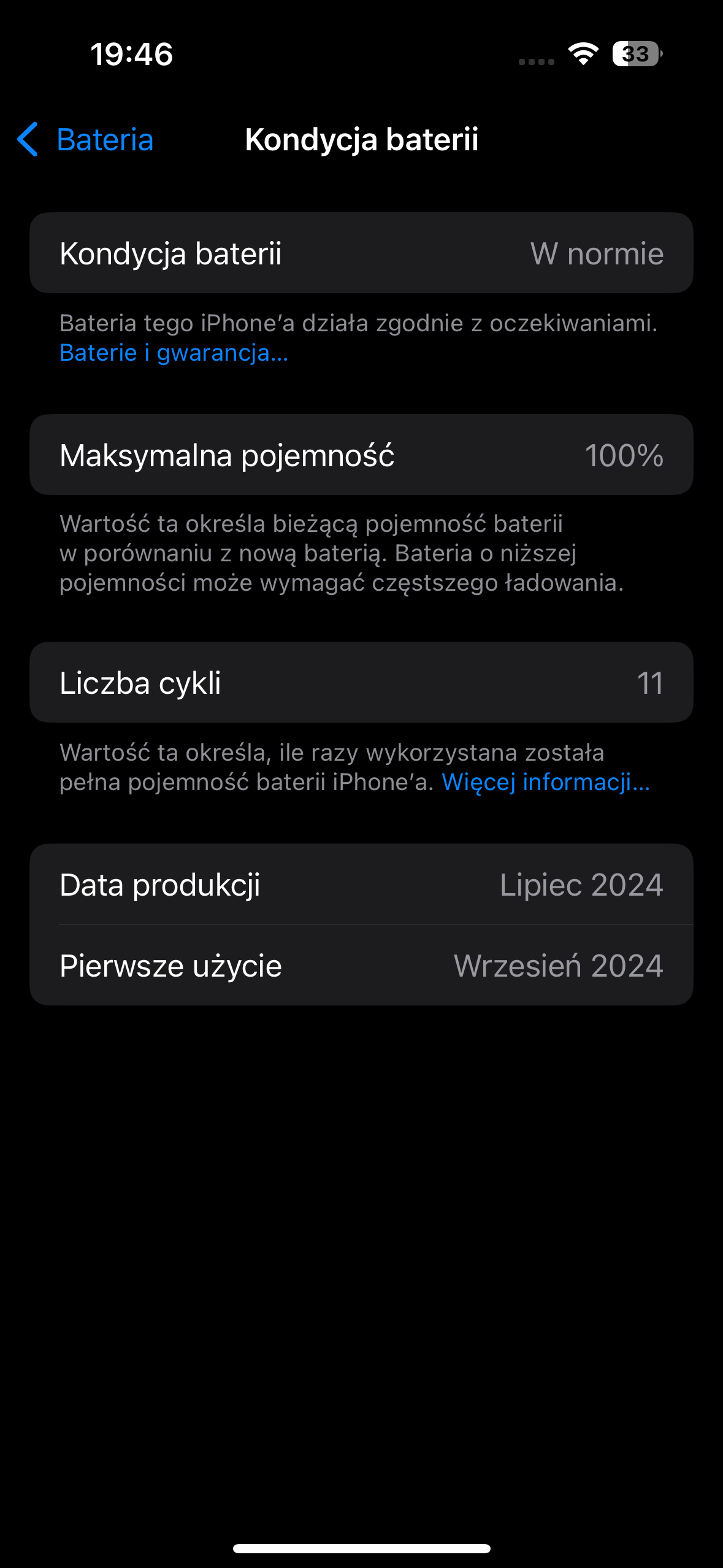 | Akumulator | Li-Ion 3561 mAh, szybkie ładowanie PD 25 W, bezprzewodowe 25 W MagSafe / 15 W Qi2, 4,5 W przewodowe ładowanie zwrotne |