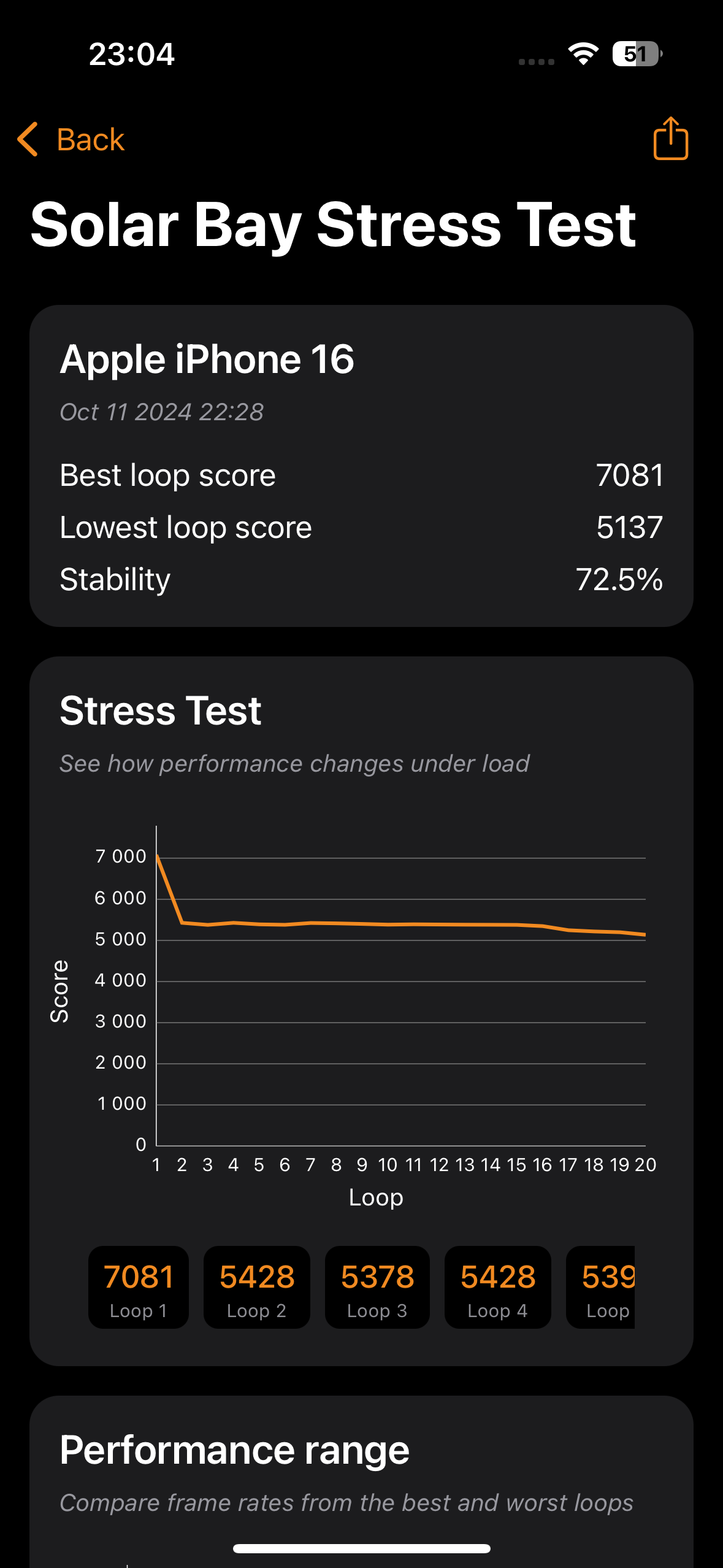 Wydajność graficzna GPU nie jest już taka oczywista – wyniki są zbliżone, raz Apple ma przewagę, a raz Snapdragon. Stabilność w testach obciążeniowych wygląda typowo dla flagowców – wydajność wyraźnie spada i to już po pierwszym przebiegu, ale jest dostatecznie dobra, by zapewnić sprawną obsługę nawet wymagających gier. Temperatura obudowy podczas testu obciążeniowego sięgnęła 46°C w najcieplejszym miejscu obok aparatów.