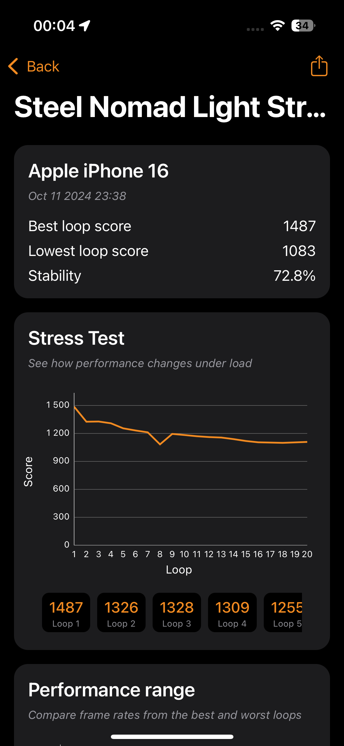 - Steel Nomad Light Stress: 1487/1083, stabilność 72,8%