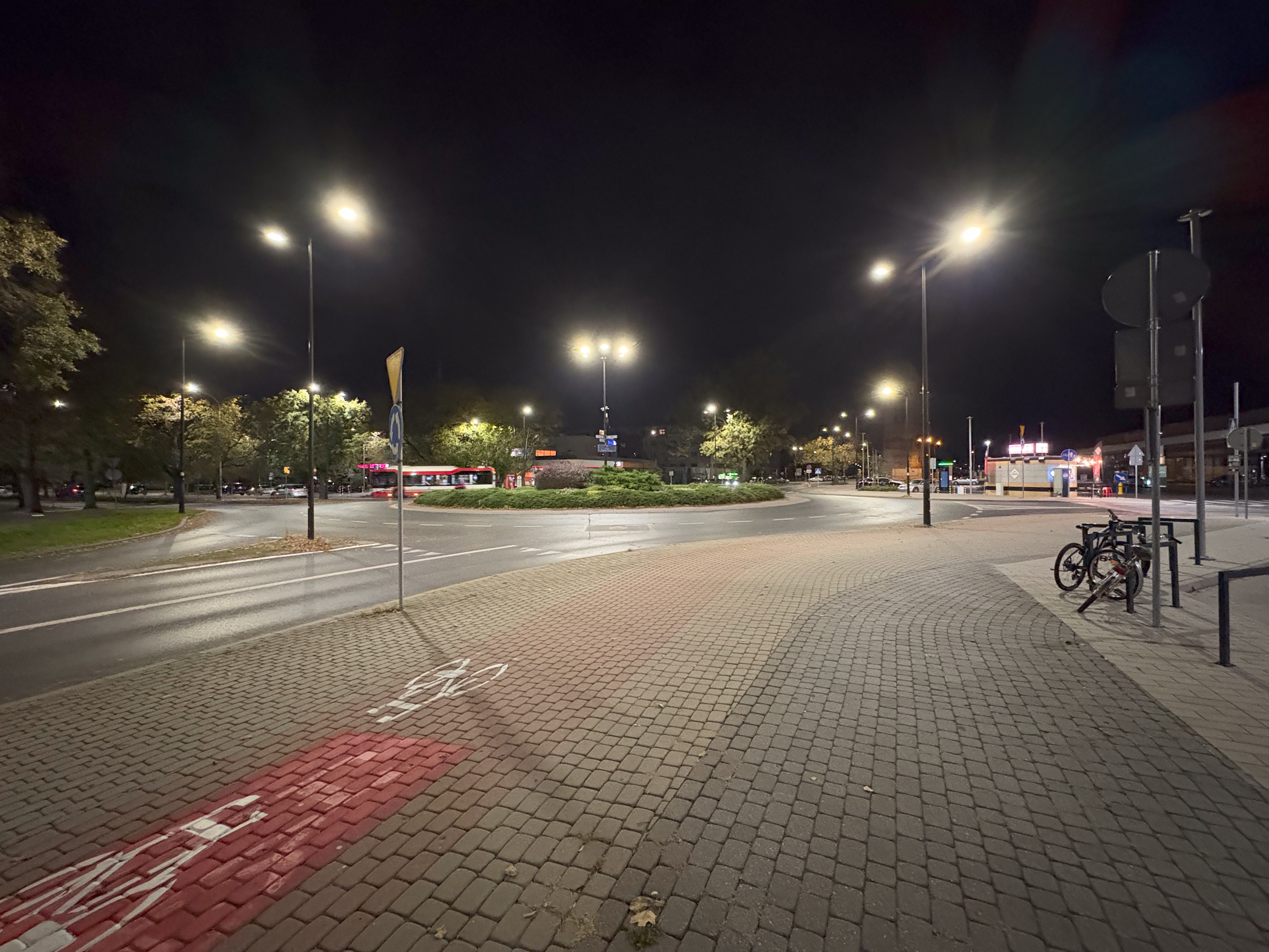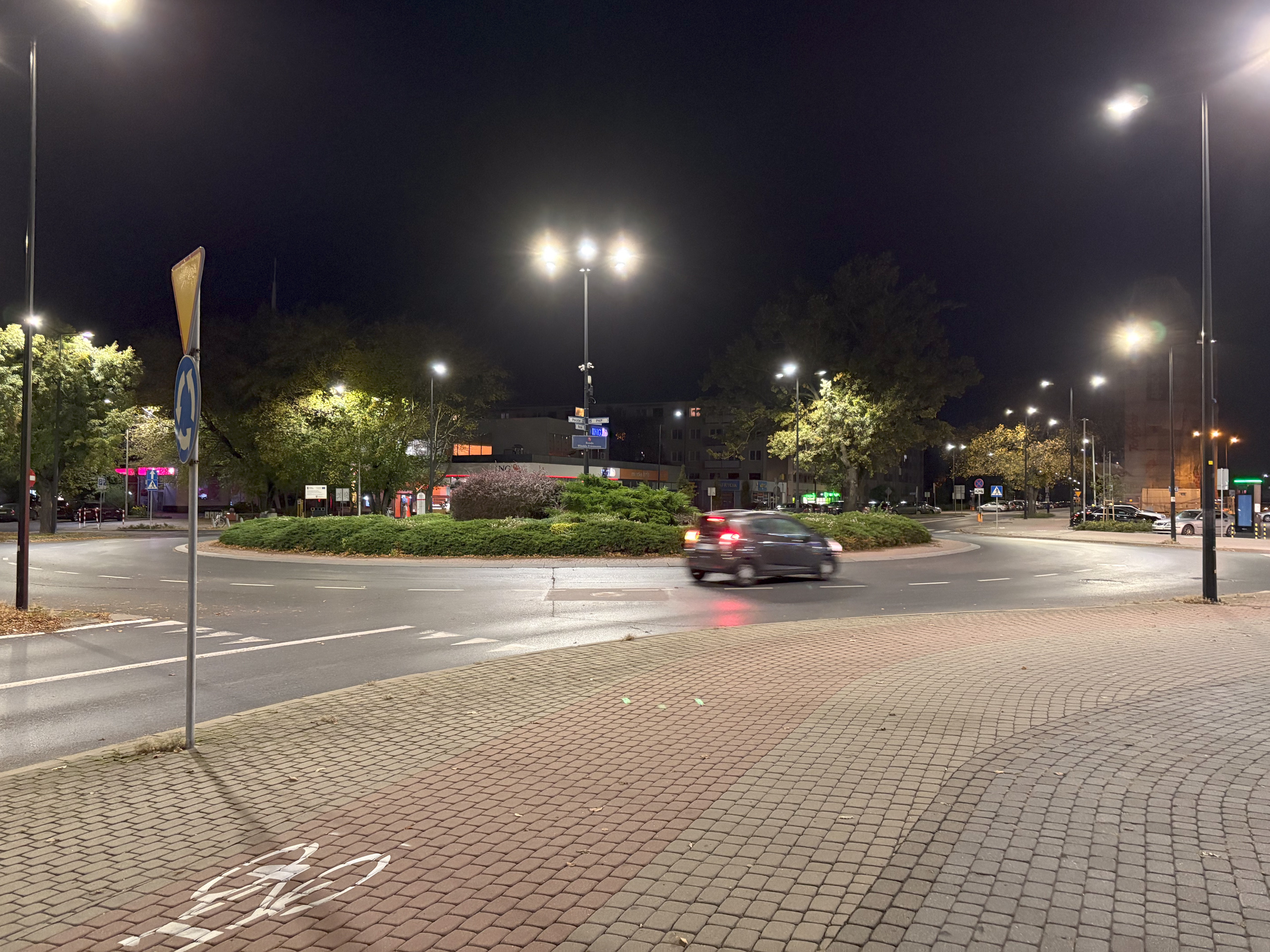 W nocy iPhone radzi sobie bardzo dobrze. Wydaje się, że Apple w końcu opanował sztukę stosowania powłok przeciwodblaskowych, zdjęcia ze źródłami światła w kadrze nie są bowiem tak upstrzone flarami, jak bywało w starszych modelach. Owszem, wciąż występują, ale w znacznie mniejszym natężeniu i nie psują zbytnio efektu.