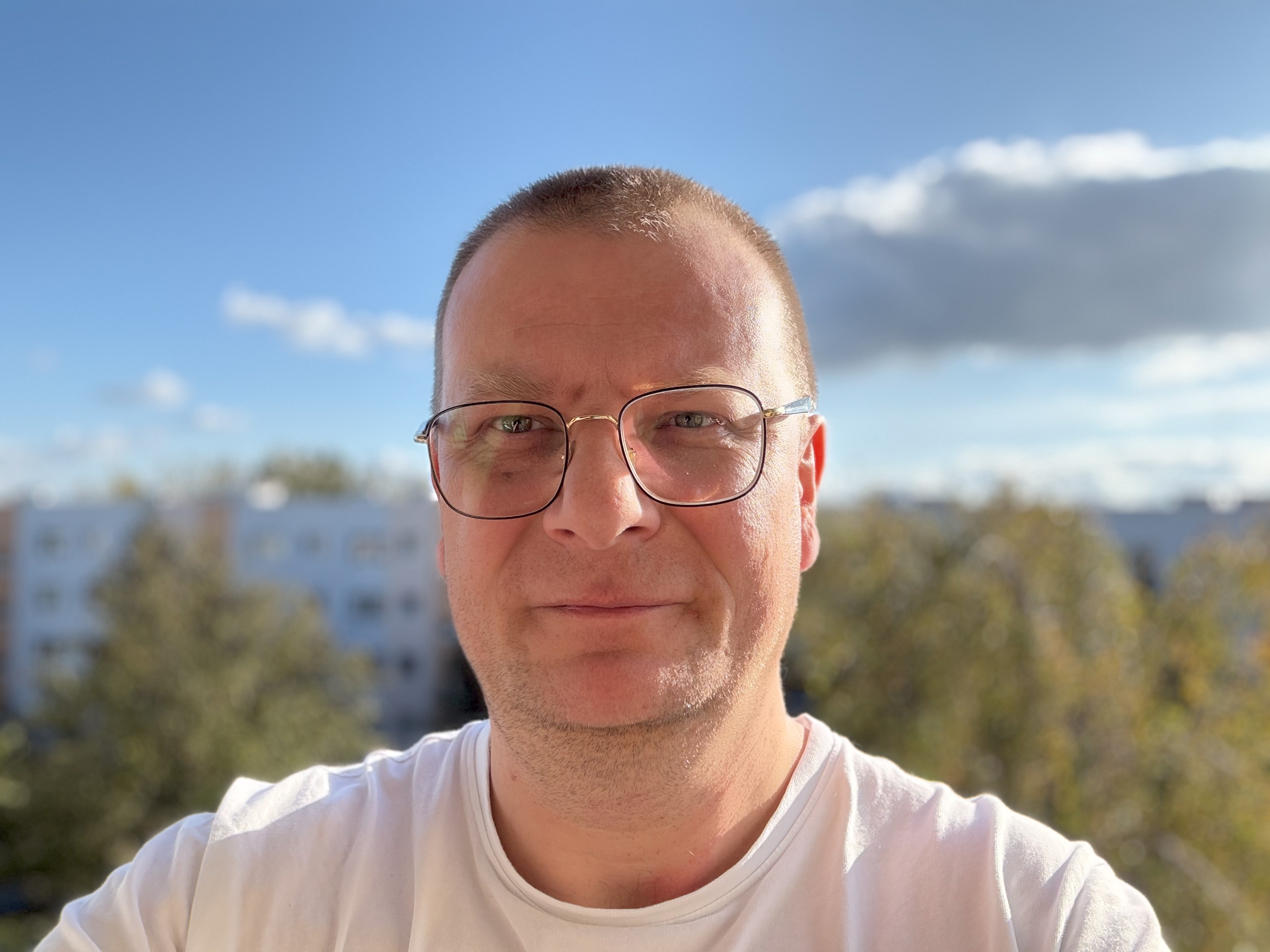 Tryb portretowy jest mocną stroną iPhone’a 16. Działa przy tym specyficznie – wykonywane są dwa zdjęcia, jedno standardowe, ale z zapisaną mapą głębi, a drugie po rozmyciu. Ma to oczywiste zalety – można zobaczyć, jak zdjęcie wyglądało, zanim się za nie wzięło oprogramowanie i co oczywiste, można poprawić punkt ostrości i siłę rozmycia. Widać też, że aparat główny używany do portretów ma na tyle dużą matrycę, że przy zdjęciach z niewielkie odległości pojawia się także naturalny bokeh.