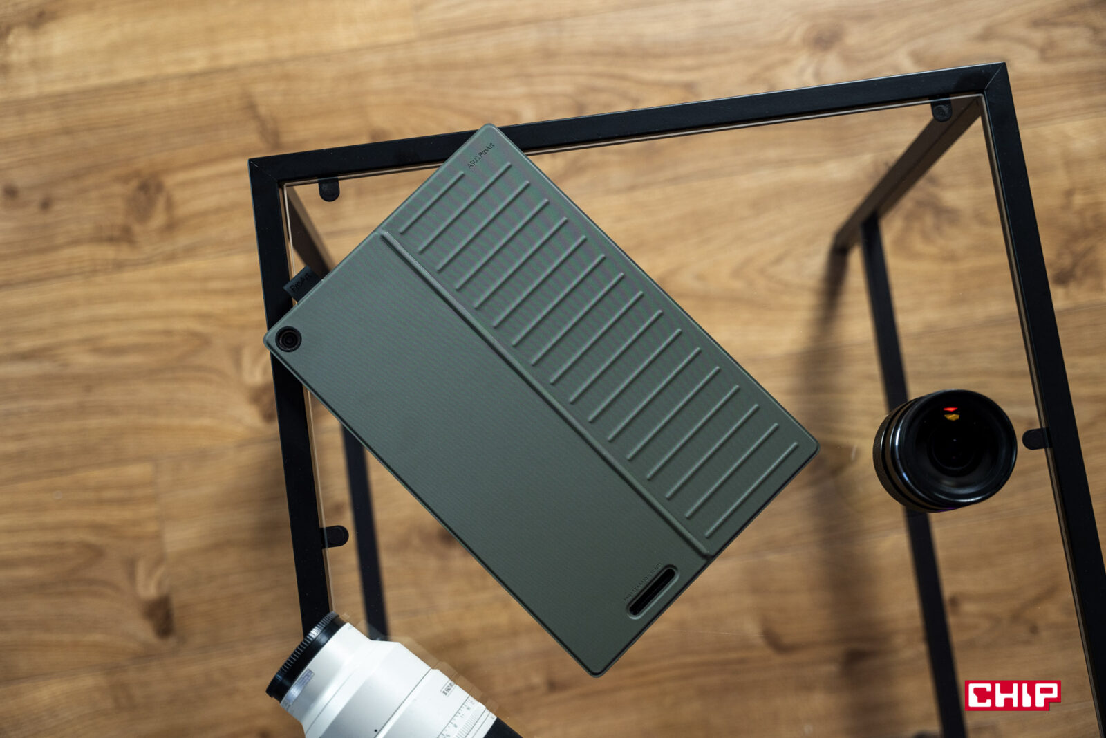 Skoro jednak mamy taką, a nie inną konstrukcję, co możemy o niej powiedzieć? Asus ProArt PZ13 jest świetnie wykonany. Metalowa obudowa o grubości 9 mm i masie zaledwie 850 gramów naprawdę robi wrażenie. Do tego sprzęt jest wodoodporny, zgodnie z normą IP52 oraz MIL-STD 810H i producent zapewnia, że może działać w temperaturze od -30 do 70 stopni Celsjusza i na wysokośći do 1524 m. O tym, że to sprzęt z tych bardziej pancernych świadczy też bardzo solidne etui. Choć przyznaję, że w zielonym kolorze wygląda naprawdę paskudnie, to spełnia swoje zadanie i dobrze chroni obudowę przed uszkodzeniami.