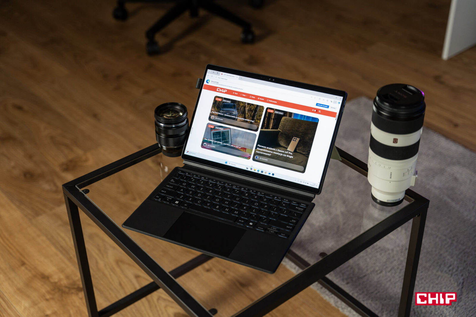 Korzystanie, nie tylko z ProArt PZ13, ale i choćby Surface Pro jest utrodnione wszędzie tam, gdzie nie możemy go postawić na blacie. Mamy ograniczenia w dostosowaniu nachylenia ekranu, a namiot trzymający wyświetlacz bardzo trudno jest utrzymać na kolanach. Czyli wszystkie czynności wymagające podczas pracy aktywnego korzystania z klawiatury są karkołomne.