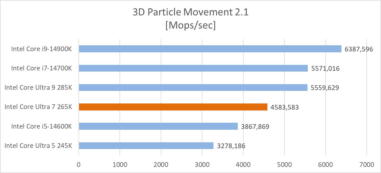 3DPM został opracowany przez serwis Anandtech. Symuluje on sześć różnych rodzajów ruchów cząstek w trójwymiarze. Poniżej znajdziecie ogólny wyniki testu podany jako mops/sec.