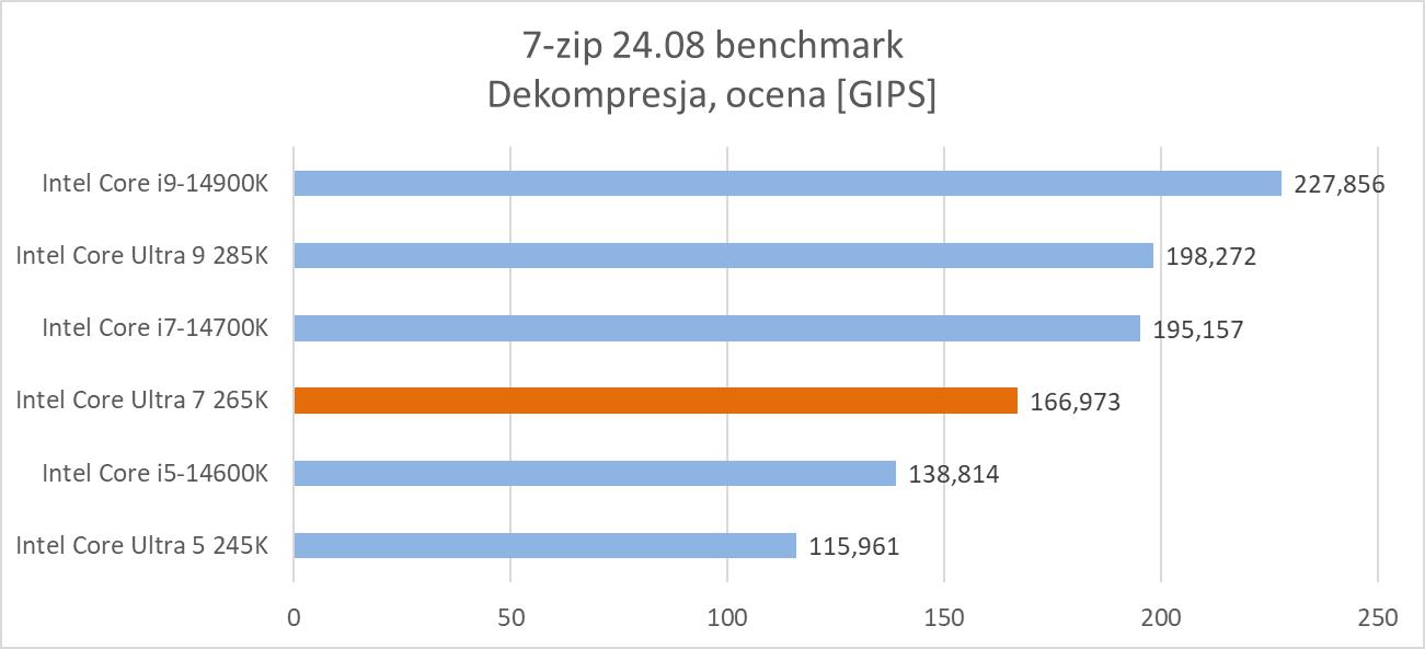 7-Zip to darmowy program do kompresji plików, który jest często wykorzystywany przez użytkowników komputerów. W testach wykorzystaliśmy wbudowany benchmark, który zwara wyniki dla kompresji i dekompresji.