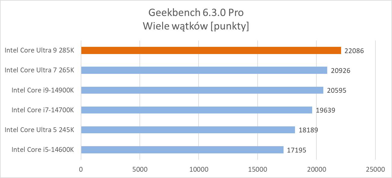 Geekbench 6 Pro to wieloplatformowy benchmark, który łatwo mierzy wydajność różnych systemów. Bardzo często pojawia się też w pierwszych przeciekach dotyczących procesorów czy kart graficznych. Test CPU mierzy wydajność jedno i wielowątkową przy różnych zastosowaniach, co pozwala na ocenę całości systemu.