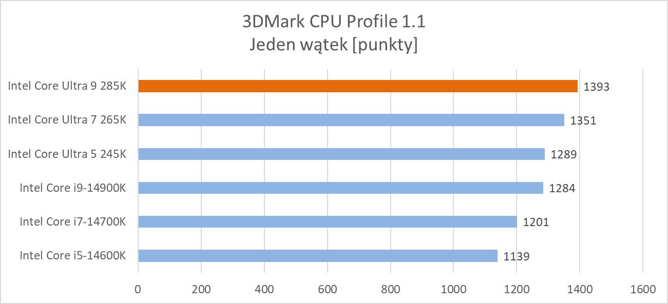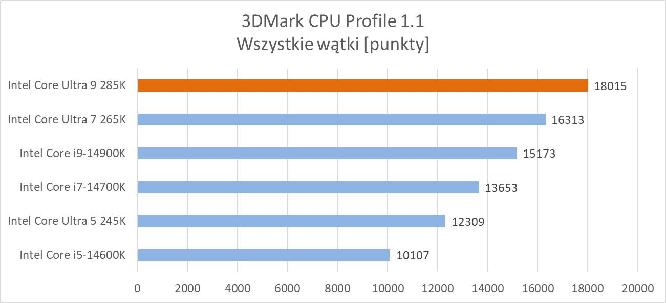 3DMark to jeden z najpopularniejszych benchmarków na świecie. Twórcy wprowadzili do niego CPU Profile, który sprawdza wydajność przy obciążeniu różnej ilości wątków. Zebraliśmy tutaj wyniki dla jednego oraz maksymalnej ilości wątków.