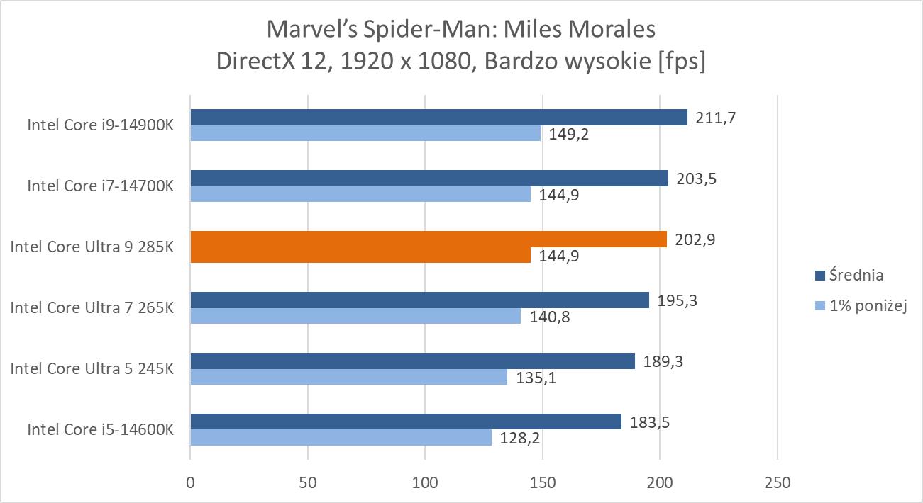 Kontynuacja ciepło przyjętego Spider-Man-a z 2018 roku. W grze tytułowy bohater przejmuje rolę po Piterze Parkerze. Jest to mocna gra akcji z widokiem trzecioosobowym w otwartym świecie dla fanów Marvela. Gra zrobiona przez to samo studio co poprzedniczka, czyli Insomniac Games, zadebiutowała w 2022 roku i również była ciepło przyjęta przez graczy. Testy przeprowadziliśmy w dzielnicy Upper East Side przy ustawieniach bardzo wysokich.