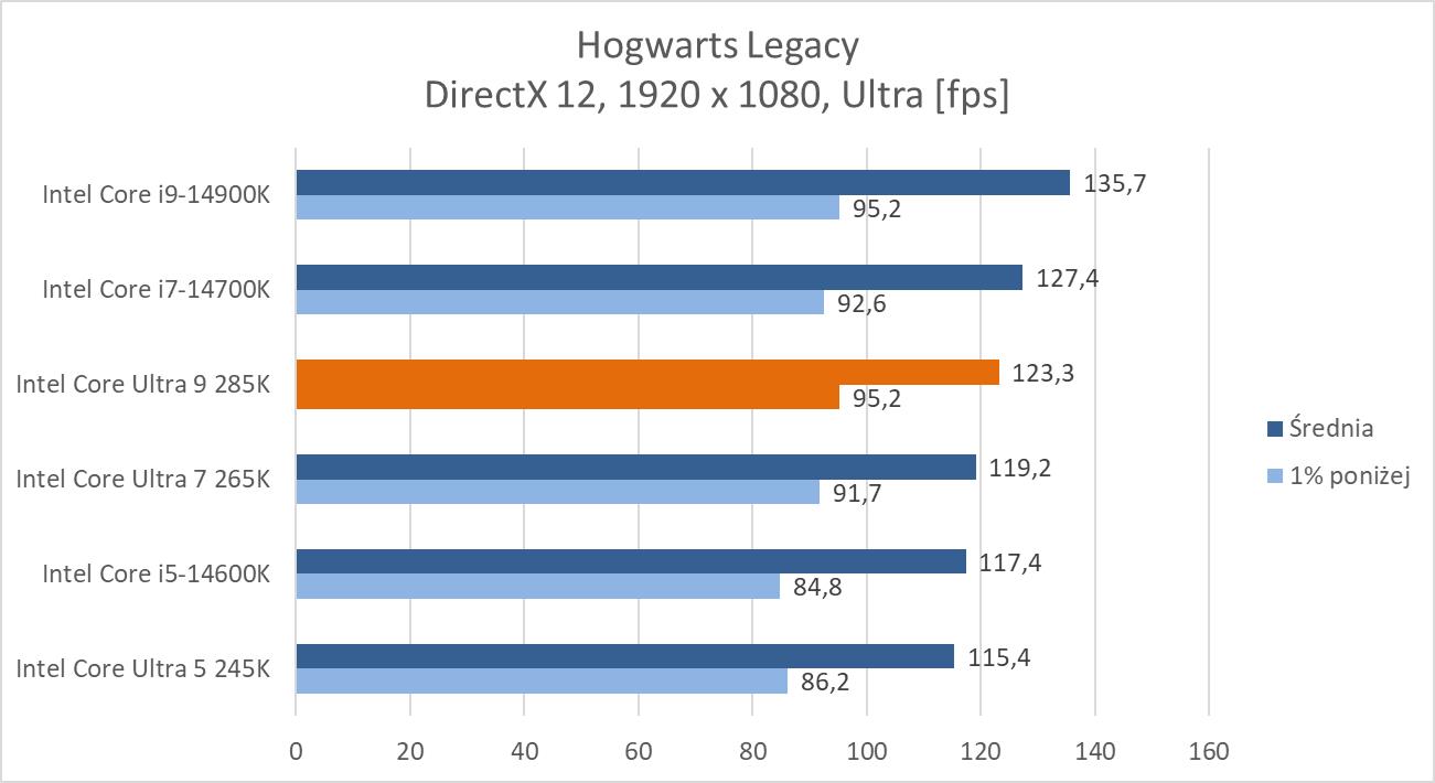 Hogwarts Legacy to gra akcji RPG z otwartym światem umieszczonym w uniwersum Harry’ego Pottera, stworzona przez studio Avalanche. W tym tytule wcielamy się w ucznia, który w XIX wieku trafia do tytułowej szkoły. Akcja gry dzieje się dużo wcześniej niż znane z uniwersum opowieści, dlatego nie znajdziemy w niej znajomych postaci z książek. Testy wykonaliśmy na placu w Hogsmeade. Wybraliśmy też ustawienia Ultra.