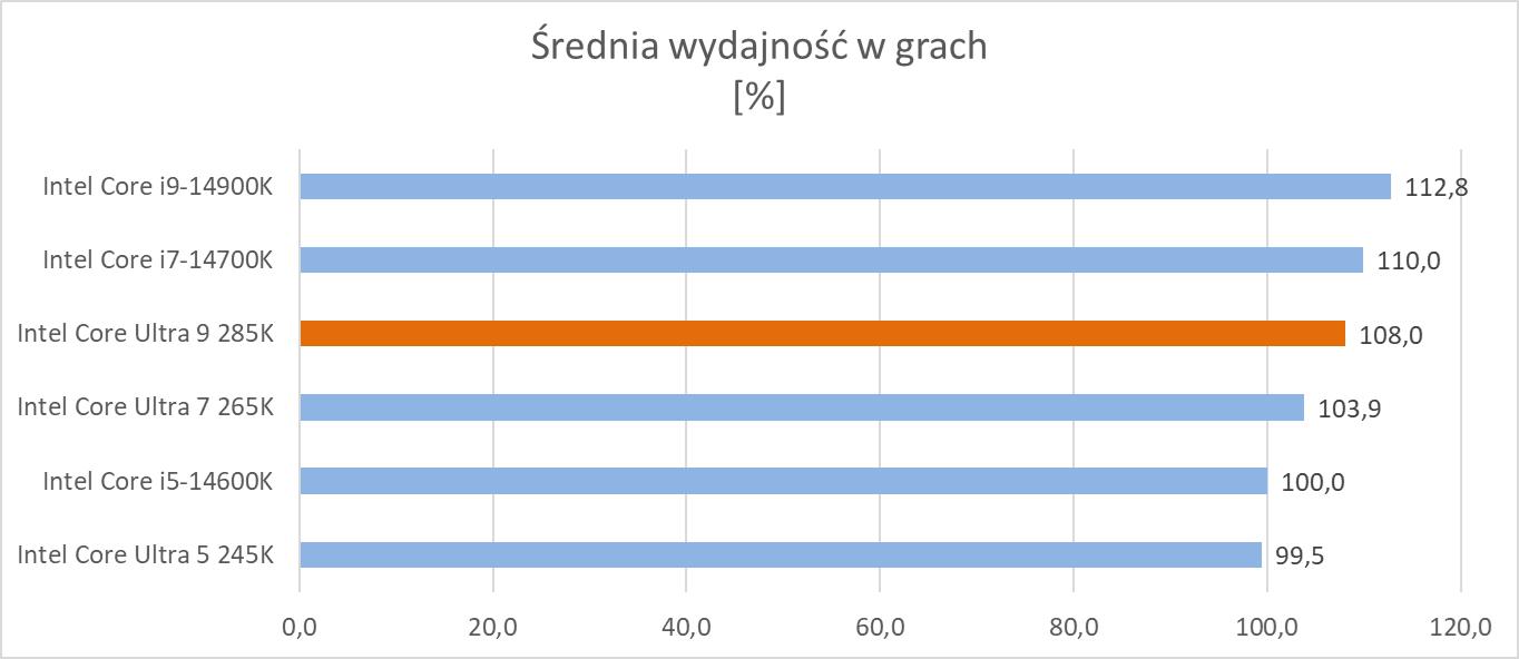 Jeśli macie i9-13900K czy i9-14900K to kompletnie nie warto podmieniać platformy. Wzrost wydajności w programach czy spadek poboru mocy nie jest po prostu wart zakupu nowej płyty i procesora. Nie mówiąc już o słabszej wydajności w grach. Jeśli głównie gracie to również nie jest to zbyt atrakcyjna propozycja – brakuje jej wydajności, a przecież są jeszcze konstrukcja X3D od AMD, które będą po prostu ciekawszym wyborem do gamingu. Procesor można rozważyć jeśli składacie nowy komputer i przekonuje Was wzrost wydajności w większości programów przy niższym poborze mocy. Można by też dodać, że wszak to nowa platforma i powinna być możliwość rozbudowy o nowe procesory w przyszłości, ale ostatnimi czasy Intel niezbyt długo wspierał podstawki, a i teraz nie mamy żadnych konkretnych informacji o przyszłości LGA1851.
