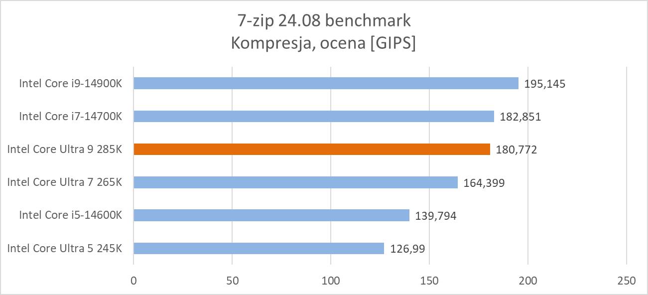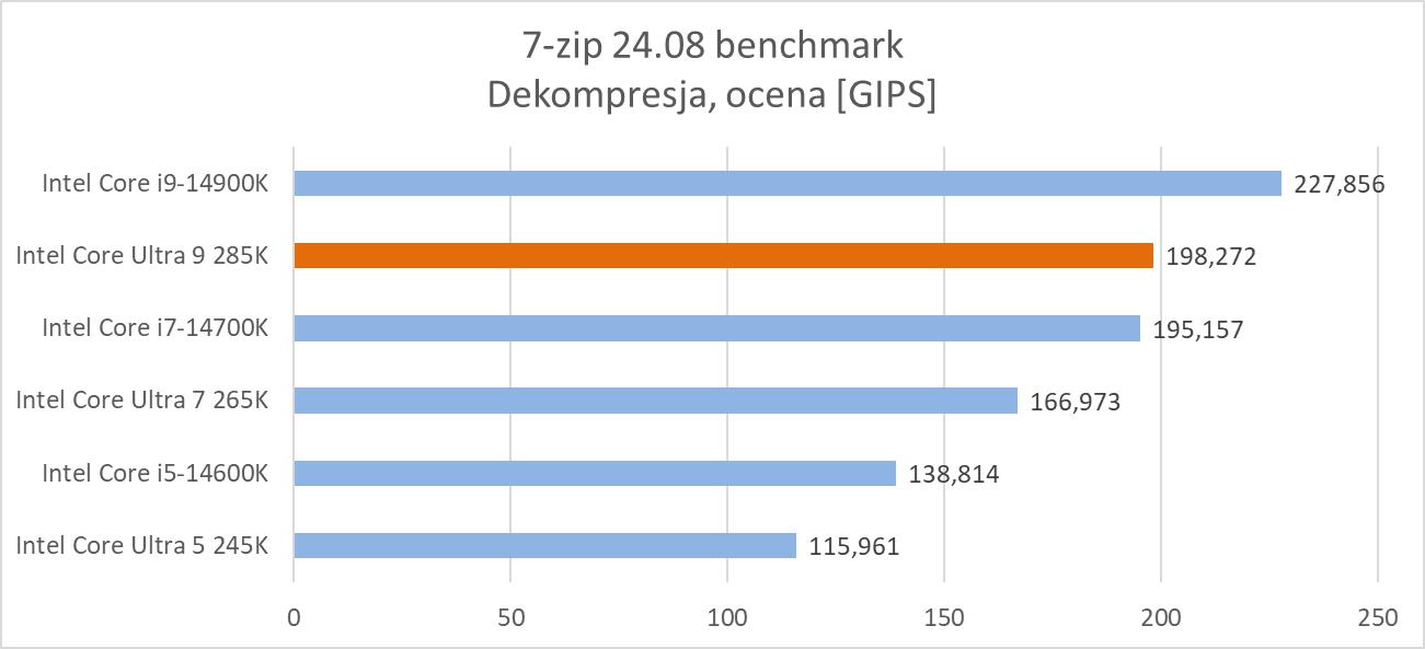 7-Zip to darmowy program do kompresji plików, który jest często wykorzystywany przez użytkowników komputerów. W testach wykorzystaliśmy wbudowany benchmark, który zwara wyniki dla kompresji i dekompresji.