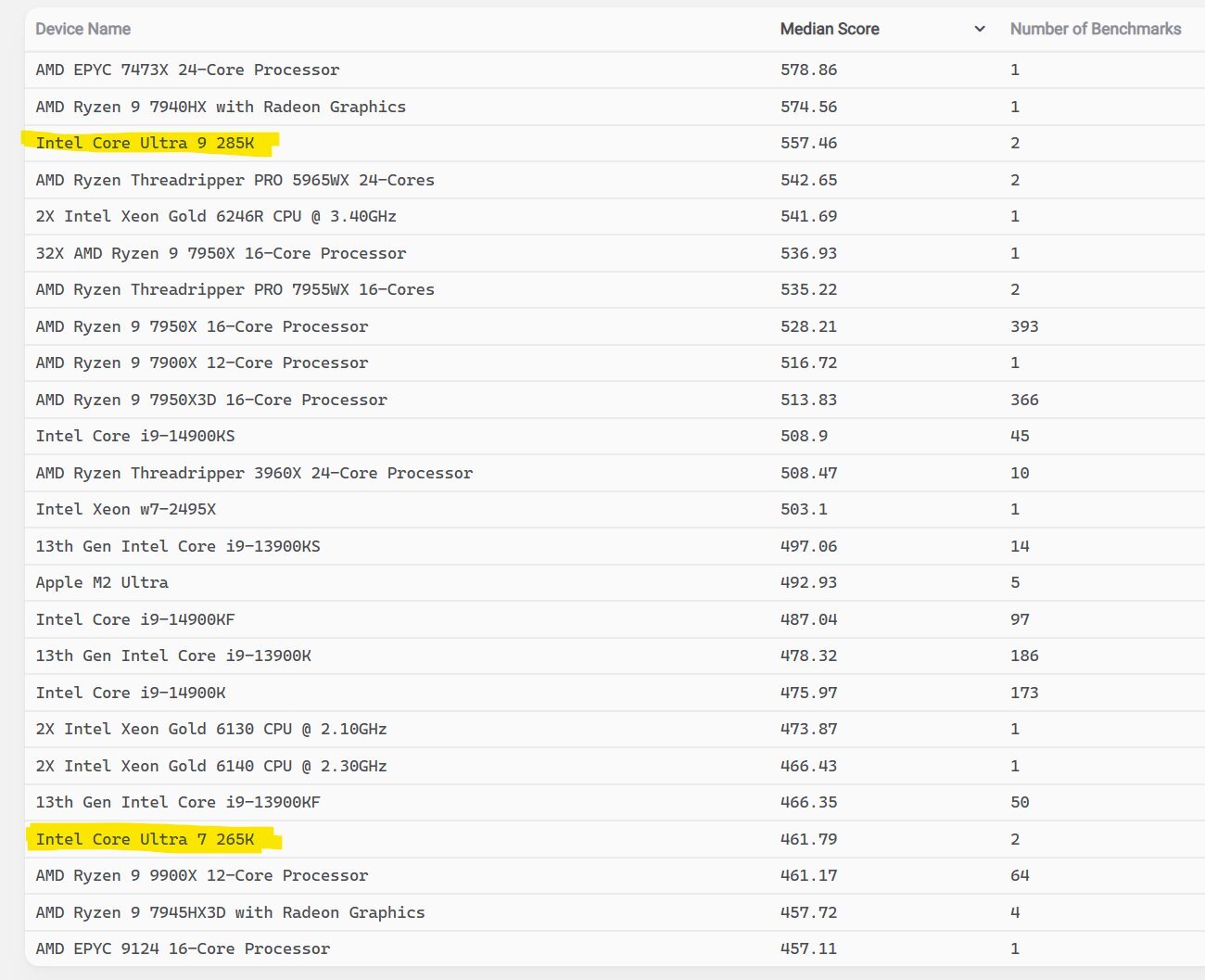 Intel Core Ultra 9 285K osiągnął imponujące 18964 punktów w wydajności wielowątkowej, co przewyższa wszystkie poprzednie flagowe procesory Intel Core i9. Jednak wynik pojedynczego rdzenia osiągnął maksymalnie 909 punktów, co stawia go poniżej wielu procesorów Core i9 z rodzin Raptor Lake i Raptor Lake Refresh.