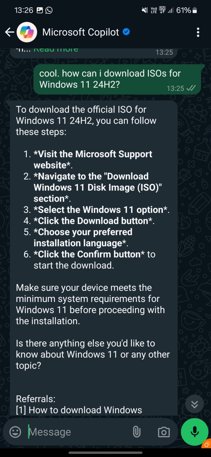 Cel jest prosty – zwiększenie wygody i możliwości użytkowników mediów społecznościowych. Przykładem Copilot dla WhatsApp – można zrobić zdjęcie i udostępnić je chatbotowi, a następnie poprosić go o opisanie zdjęcia lub znalezienie informacji na temat znajdujących się na nim obiektów. Potrafi również używać DALL-E 3 do generowania obrazów SI. Nie też nie stoi na przeszkodzie, aby zasięgnąć jego porady.