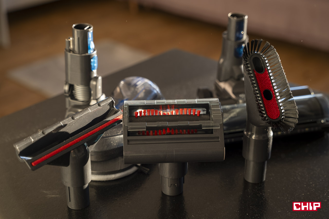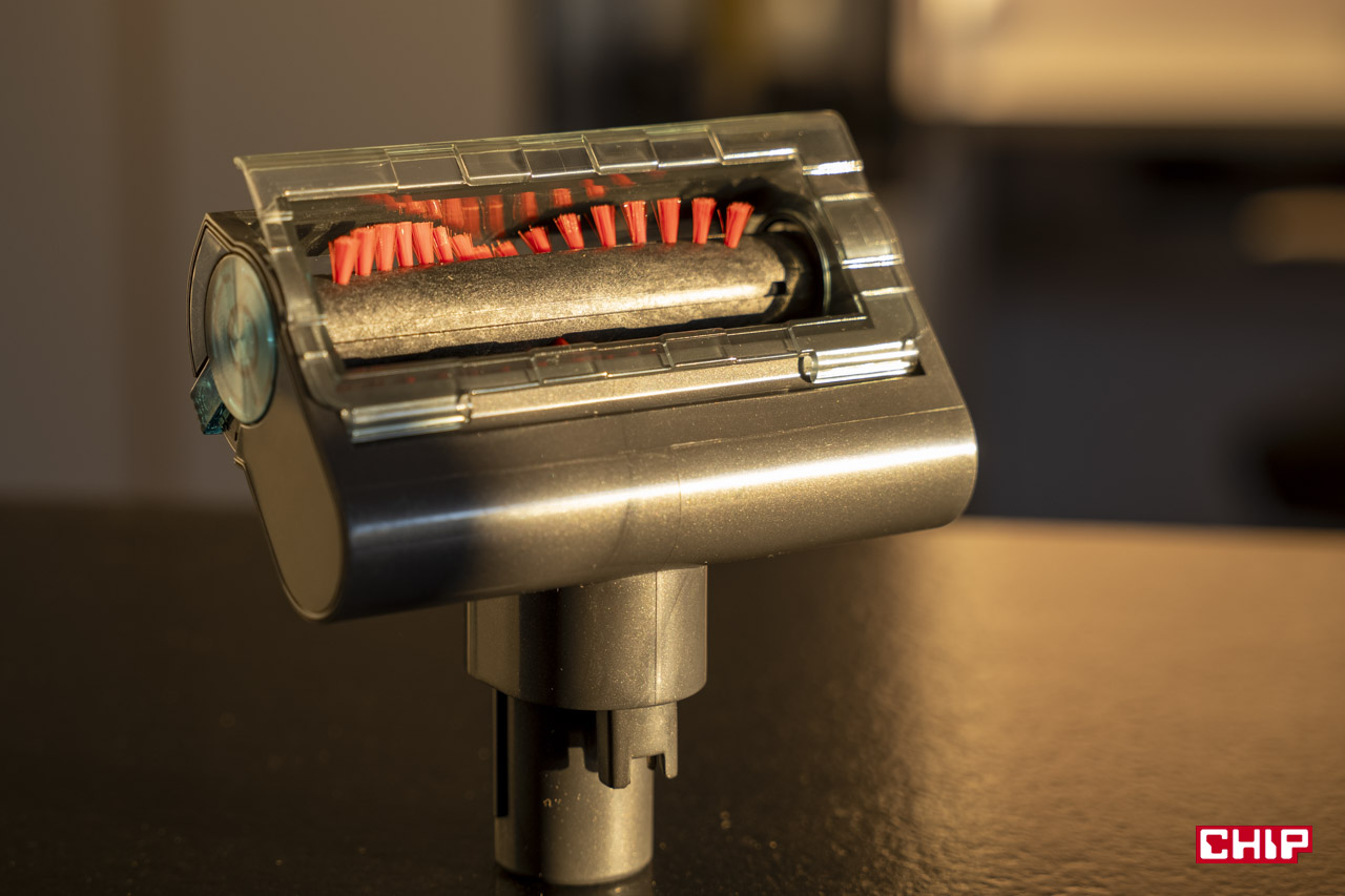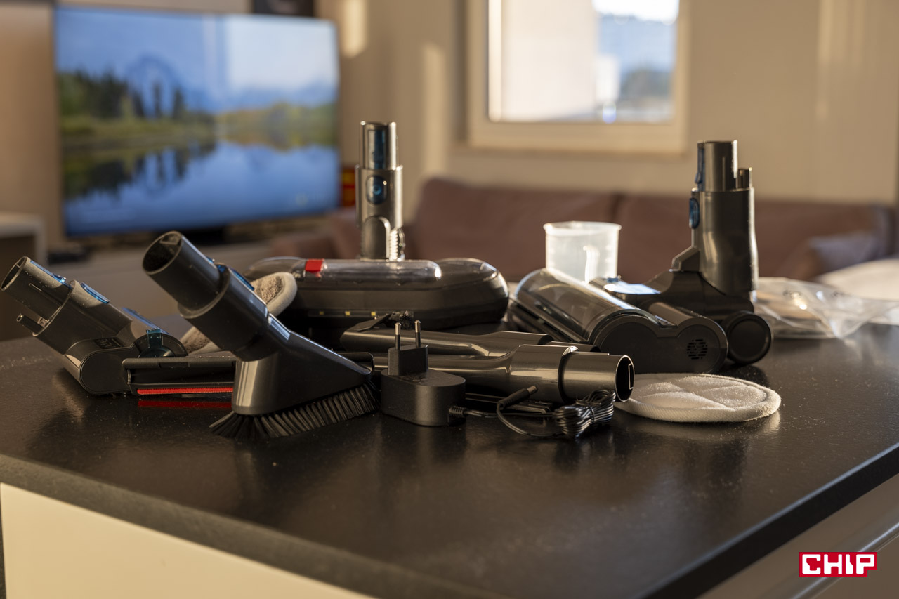 Zacznę od odkurzania, bo to temu rozwiązaniu poświęcona jest znaczna większość końcówek. Producent chwali się trzema trybami pracy z minimalną mocą na poziomie 8000 Pa oraz maksymalną na poziomie aż 28000 Pa. Trudno zmierzyć takie parametry, natomiast mam dobrą wiadomość – jeśli nie rozciągacie teleskopowej rury, bezproblemowo posprzątacie przy najniższym ustawieniu mocy. Sprzęt nie jest wtedy rekordowo cichy, ale nie czułem potrzeby korzystania ze słuchawek czy wytłumiania tego hałasu.