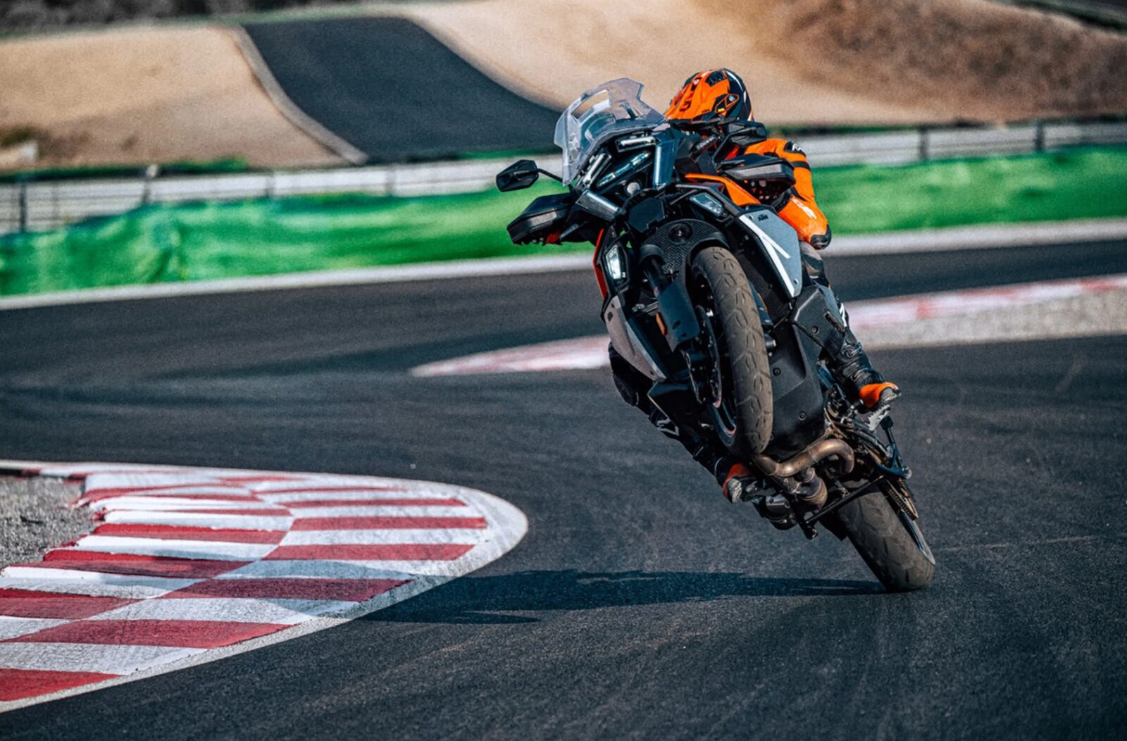 W trybie automatycznym zmiana biegów ma odbywać się płynnie i błyskawicznie, bo ledwie 50 ms, uwzględniając prędkość silnika, moment obrotowy, przyspieszenie, a nawet kąt nachylenia motocykla. AMT oferuje również system szybkiego redukowania biegów poprzez zamknięcie przepustnicy, co umożliwia dynamiczne przyspieszenie podczas wyprzedzania. Napęd nie jest jednak jedynym wyróżnikiem tego modelu, bo KTM wyposażyło go również w zaawansowany system zawieszenia półaktywnego, który powstał we współpracy z firmą WP i ma być “najbardziej zaawansowanym systemem zawieszenia na rynku”. Zawieszenie to, sterowane elektronicznie za pomocą zaworów magnetycznych, dostosowuje amortyzację w czasie rzeczywistym do warunków drogowych. Użytkownicy mogą też dostosować ustawienia zawieszenia z poziomu wyświetlacza TFT na kierownicy, wybierając spośród czterech trybów jazdy. Dodatkowe ustawienia są dostępne poprzez opcjonalny pakiet Suspension Pro.