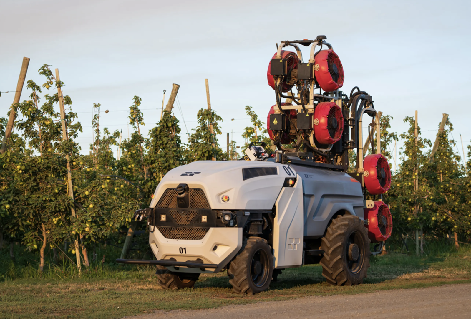 Kierowany przez GPS robot porusza się w górę i w dół rzędów winorośli lub drzew, opryskując uprawy po obu stronach toru jazdy. Wykorzystuje kombinację czujników LiDAR i kamer do identyfikowania przeszkód na swojej drodze, zwalniając lub zatrzymując się w razie potrzeby.