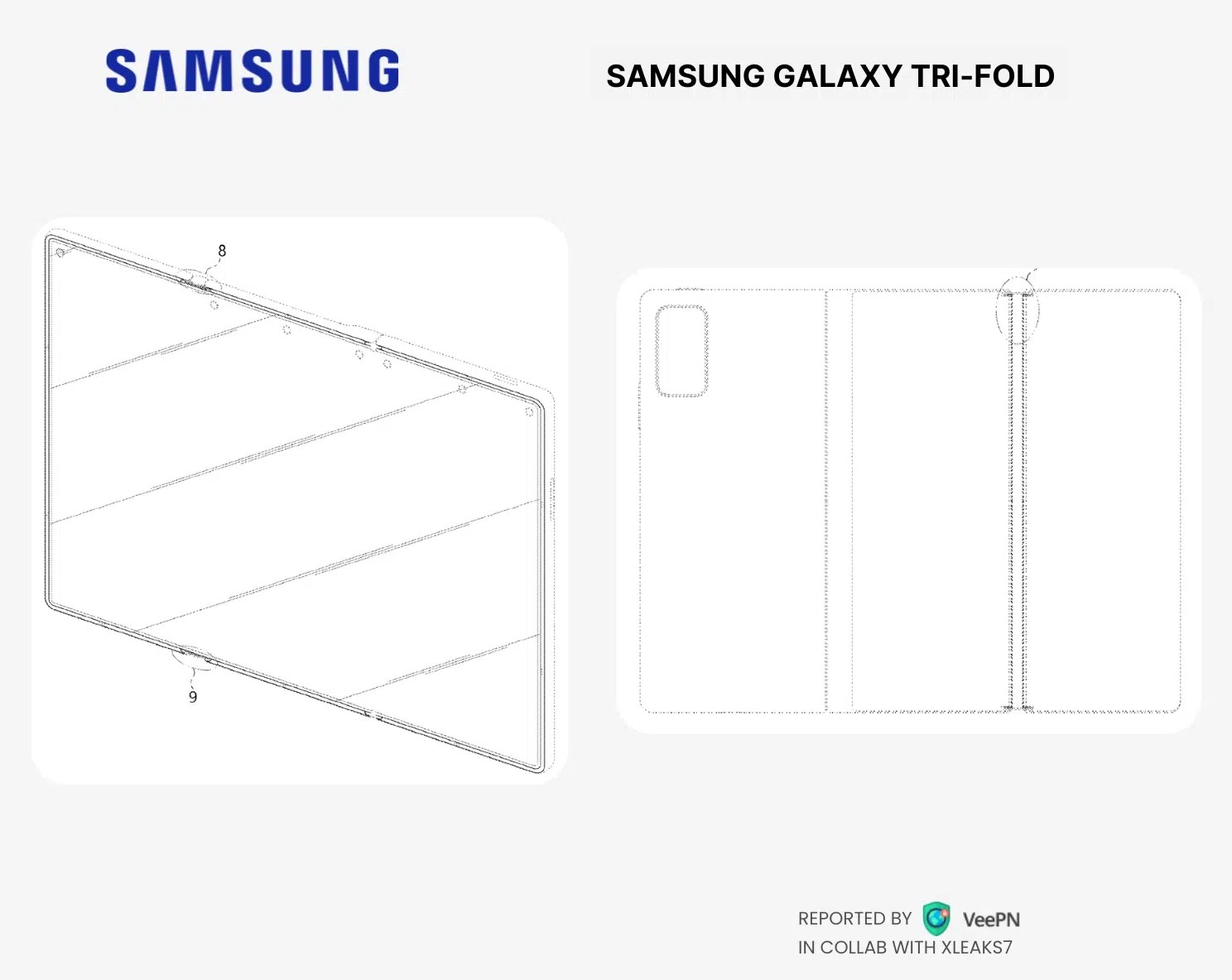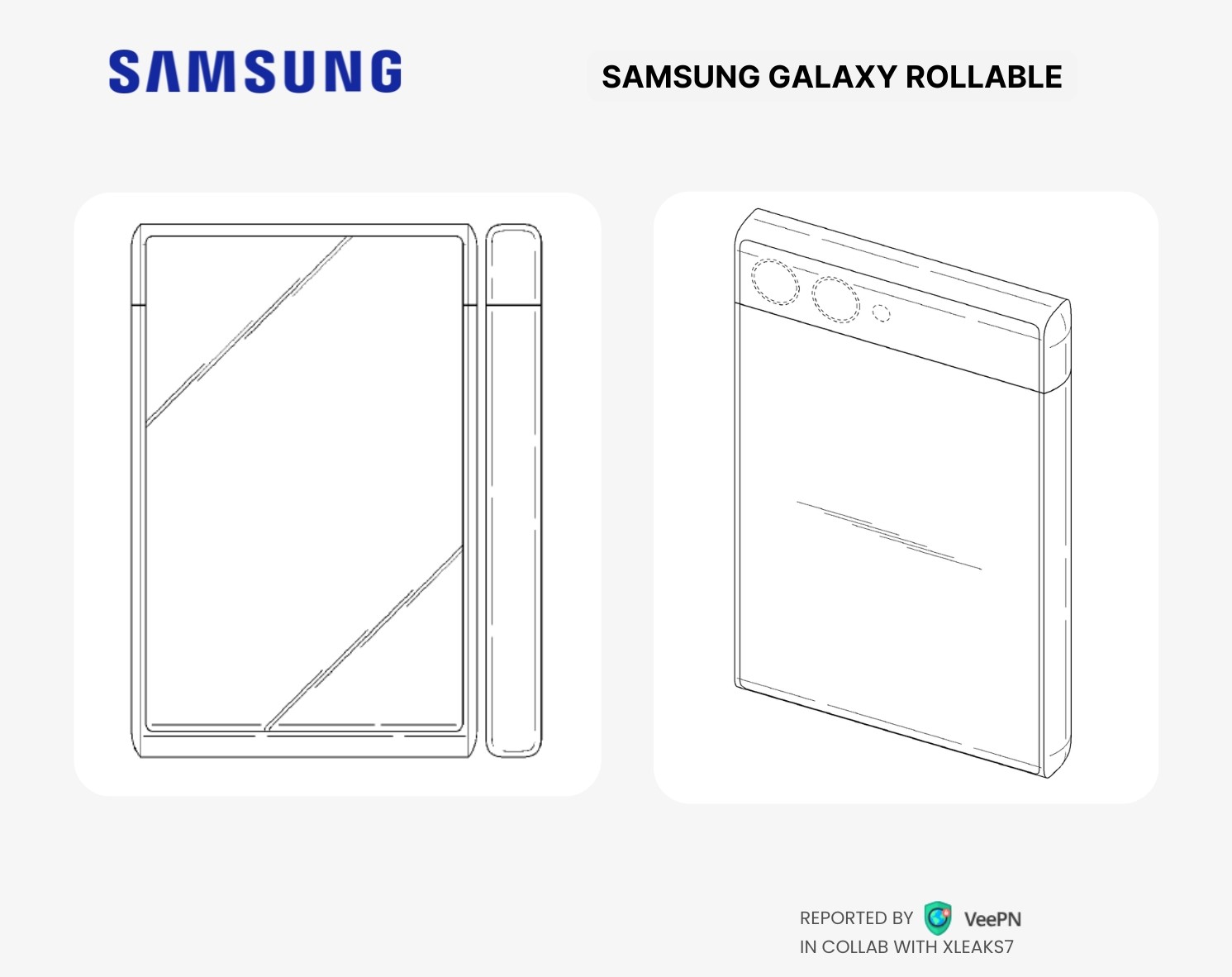 Gigant opatentował też kilka takich rozwiązań, ale najwyraźniej na tym nie poprzestaje. Świadczy o tym odkrycie przez VeePN i @xleaks7 projektów dwóch ciekawych urządzeń, odnalezionych w jednym z urzędów patentowych — Galaxy Tri-Fold i Galaxy Rollable. Ich nazwy nie pozostawiają wątpliwości, o jakie modele chodzi, bo pierwszy ma być podwójnie składanym smartfonem, a drugi ma oferować ekran rolowany.