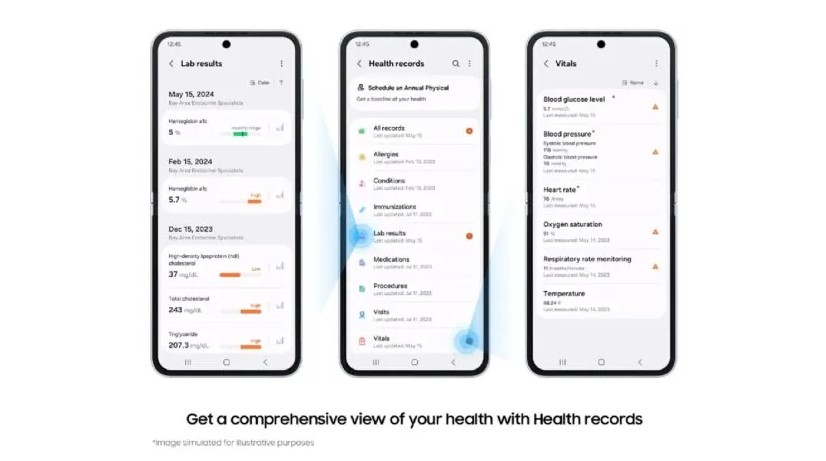 Jednym z przygotowanych dodatków jest Health Records, funkcja pozwalająca na dostęp do historii medycznej z różnych klinik i szpitali bezpośrednio z poziomu aplikacji. By móc coś takiego zaoferować, Samsung nawiązał współpracę z b.well Connected Health, która zbiera główne systemy dokumentacji medycznej w USA. Dzięki temu użytkownicy mają na wyciągnięcie ręki swoje wyniki badań, szczepienia czy recepty. My tego typu szczegóły możemy śledzić w Internetowym Koncie Pacjenta, ale dla mieszkańców Stanów Zjednoczonych jest to z pewnością ogromne ułatwienie.
