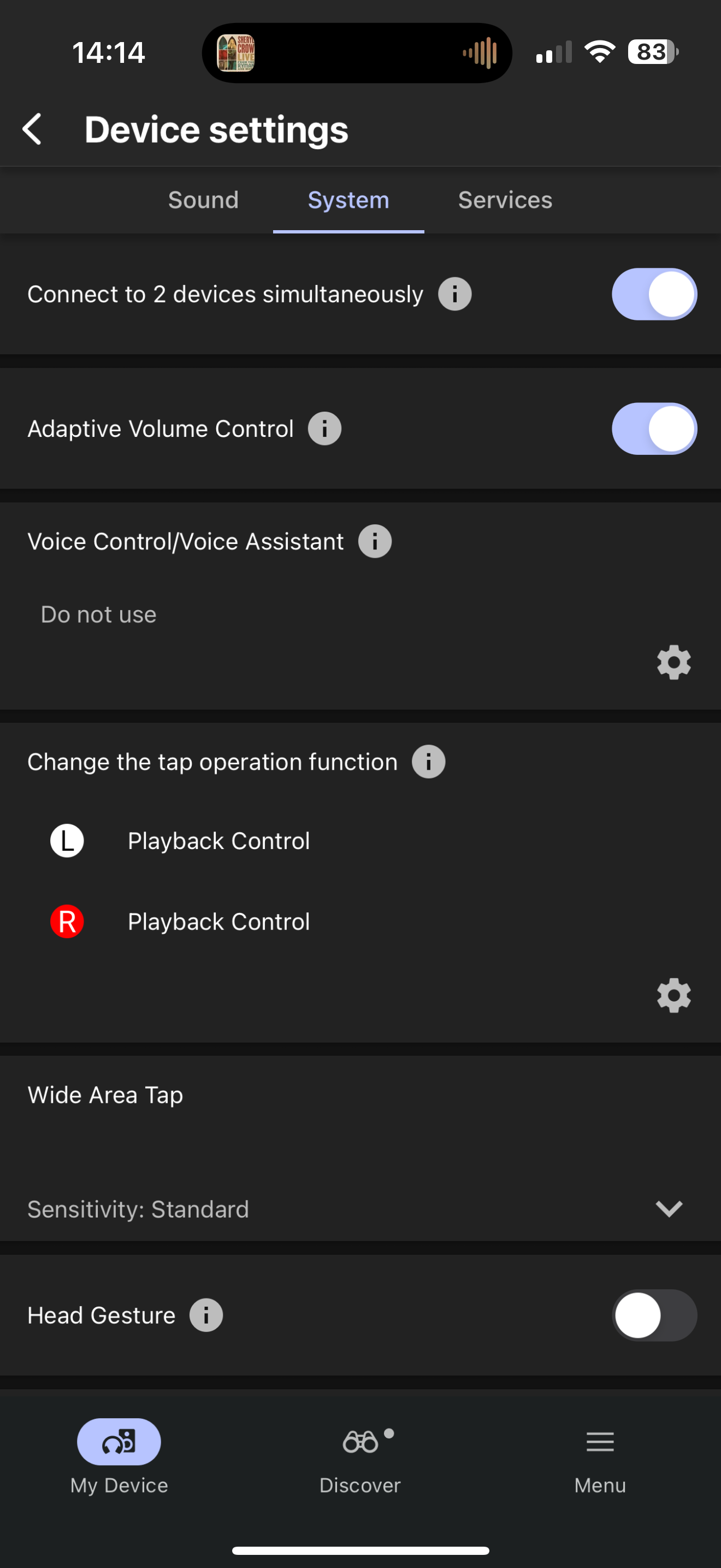 Głównym przeznaczeniem Sony LinkBuds Open nie jest słuchanie muzyki, tylko komunikacja i warto o tym pamiętać – stąd w oprogramowaniu funkcje mające ułatwić zarówno tę elektroniczną, jak i na żywo – adaptacyjna głośność i Speak-to-Chat. Nie mam do nich zastrzeżeń, tak jak i do sterowania – wszystko działa mniej więcej zgodnie z założeniami i deklaracjami Sony, a powyłączałem je u siebie, gdyż poza testem ich po prostu nie potrzebuję.