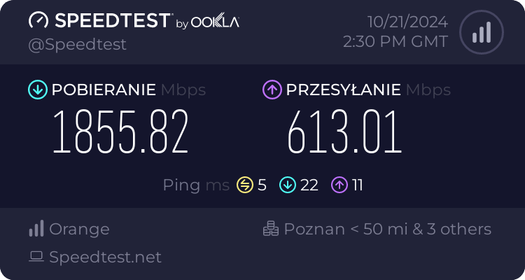 Za łączność bezprzewodową odpowiada układ Intel AX211, obsługujący zarówno Wi-Fi 6E, jak i Bluetooth 5.4. Po połączeniu z Funboxem 10 w paśmie 6 GHz pobieranie rozpędziło się prawie do granic możliwości mojego światłowodu, a wysyłanie oparło się o limit. To bardzo dobry wynik. Nie było też żadnego problemu z obsługą słuchawek bezprzewodowych ani myszy.