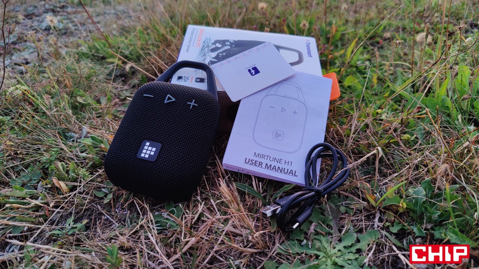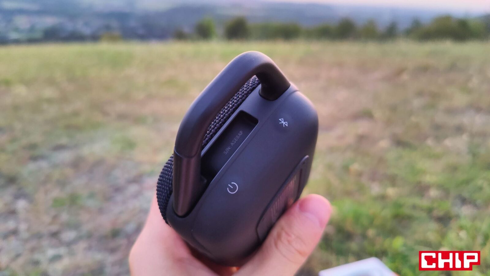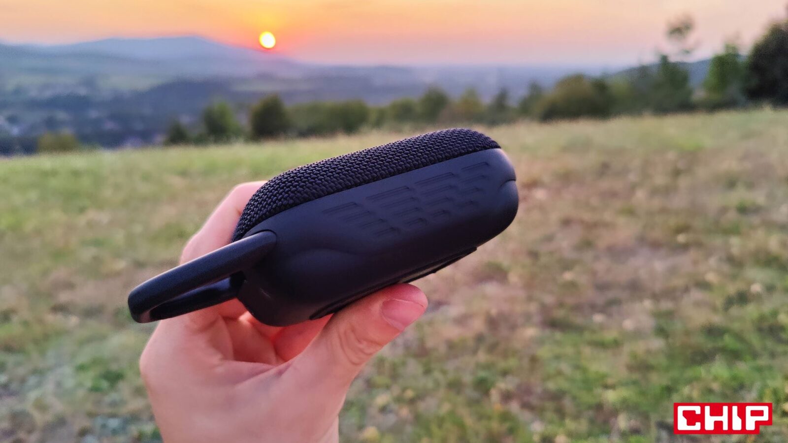 Największym wyróżnikiem Mirtune H1 jest charakterystyczny karabińczyk w górnej części. Jest to twardy plastikowy element, którego część można odchylić, aby ułatwić sobie zawieszenie głośnika np. na gałęzi, plecaku czy siatce. Otwiera to zupełnie nowe możliwości “wieszania głośników”, bo zwykle tego typu modele mają ot prostą pętelkę, która ogranicza zawieszenie sprzętu w specyficznych przypadkach. Jednocześnie tego typu pomysł znacznie zwiększa rozmiary głośnika, bo tego typu karabińczyka nie da się oczywiście złożyć.