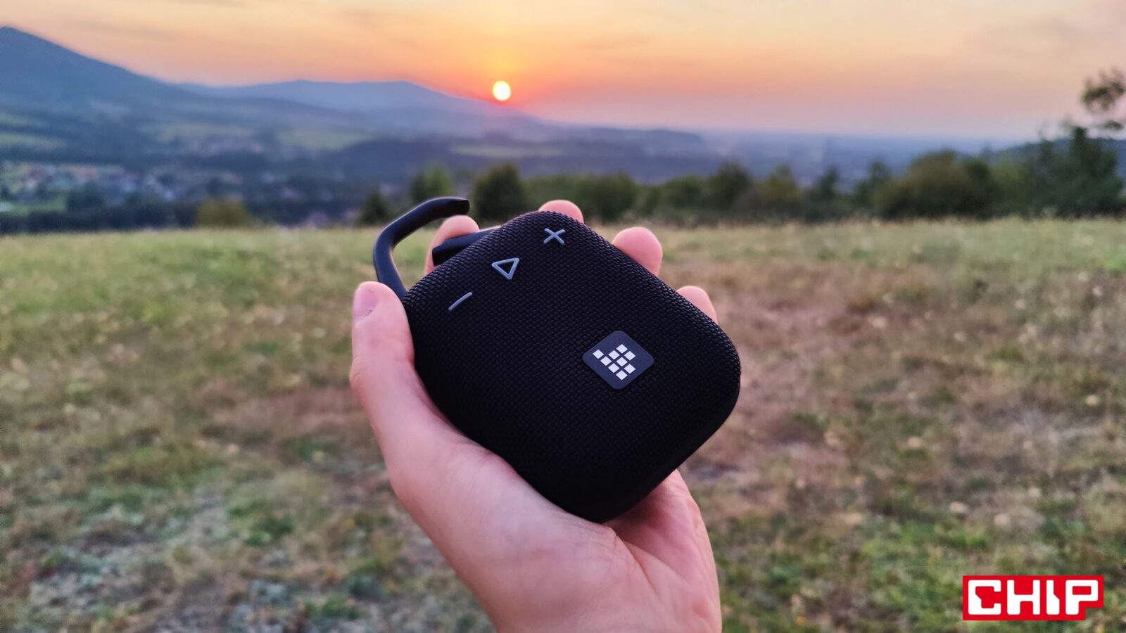 Za sferę audio odpowiada jeden przetwornik pełnozakresowy i radiator pasywny, które to rozbrzmiewają w paśmie 70-20000 Hz za sprawą kodeka SBC i połączenia Bluetooth 5.3, generując do nawet 8 watów mocy wyjściowej na pełnej głośności. Energię czerpią z 2000 mAh akumulatora, którego około 160-minutowe ładowanie zapewnia wytrzymałość do 20 godzin, ale musicie wiedzieć, że jest to poziom osiągalny głównie na głośności rzędu 20-40%. Tak przynajmniej wynika z mojego pomiaru, który sprowadził się do trzech dni, w których używałem głośniki przez 6-8 godzin na różnych poziomach głośności. Taki wynik zaskoczył mnie równie bardzo, co moc drzemiąca w tak niewielkim głośniku, bo jest on w stanie w pojedynkę nagłośnić większe pomieszczenie bez żadnego problemu. Sam testowałem ten głośnik głównie w konfiguracji stereo i przyznam, że jeśli macie w planach nagłośnienie większej przestrzeni, to powinniście kupić nie jeden, a dwa głośniki tego typu. Nie tylko dla lepszego pokrycia przestrzeni, ale przede wszystkim po prostu lepszych wrażeń.