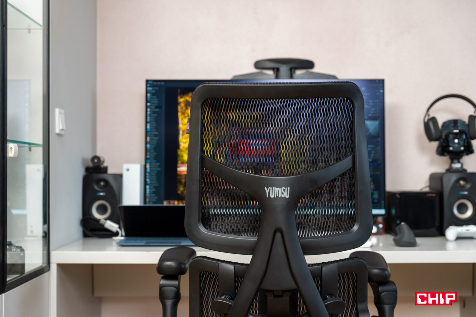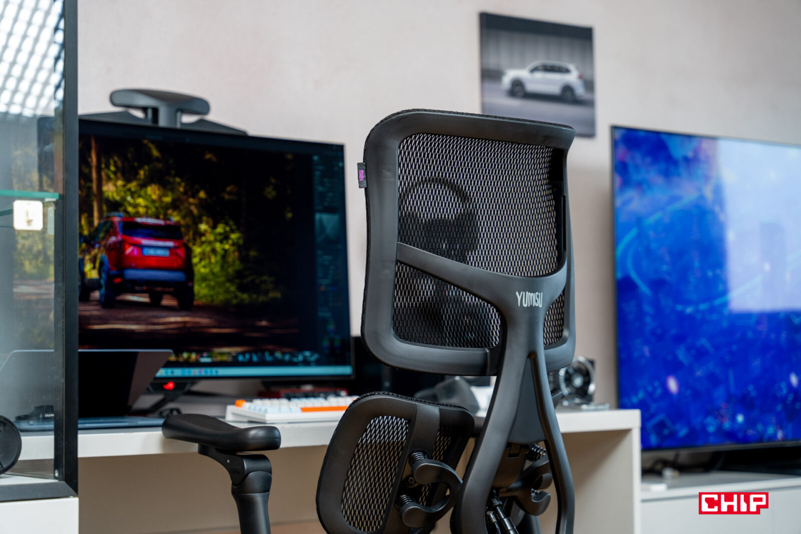 Cały fotel dosłownie chodzi i to zasługa połączenia wielu czynników. Przede wszystkim wytrzymała siateczka, nazywana przez Yumisu TECHMesh. Dzięki niej mamy miękko, ale też znacznie uprzyjemnia to pracę. Podczas upałów miałem okazję korzystać z innego fotela typowo biurowego z siateczkowym materiałem. Co prawda znacznie gęstszym, ale różnica względem fotela gamingowego była wyraźnie odczuwalna. Tutaj siatka jest dosyć rzadka, więc w najgorsze upały powinno się na tym siedzieć jeszcze przyjemniej.