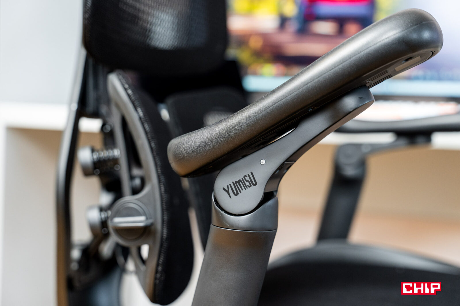 Yumisu 1010 może wydawać się niski, ale nic z tych rzeczy. Biurko w biurze mamy na wysokości 76 cm i faktycznie najniższa pozycja jest nieco zbyt niska, ale wystarczy podnieść ją ok 1/3 i podłokietniki znajdują się mniej więcej na wysokości blatu. Mam 183 cm wzrostu i fakt, że stosunkowo przeciętnej długości kończyny dolne, ale nawet w najniższej pozycji siedziska mam nogi zgięte w kolanach pod kątem 90 stopni. Wynika to z tego, że dolna część siedziska może i znajduje się nisko, ale już samo siedzisko jest umieszczone znacznie wyżej. Choć może to tak na pierwszy rzut oka nie wygląda.