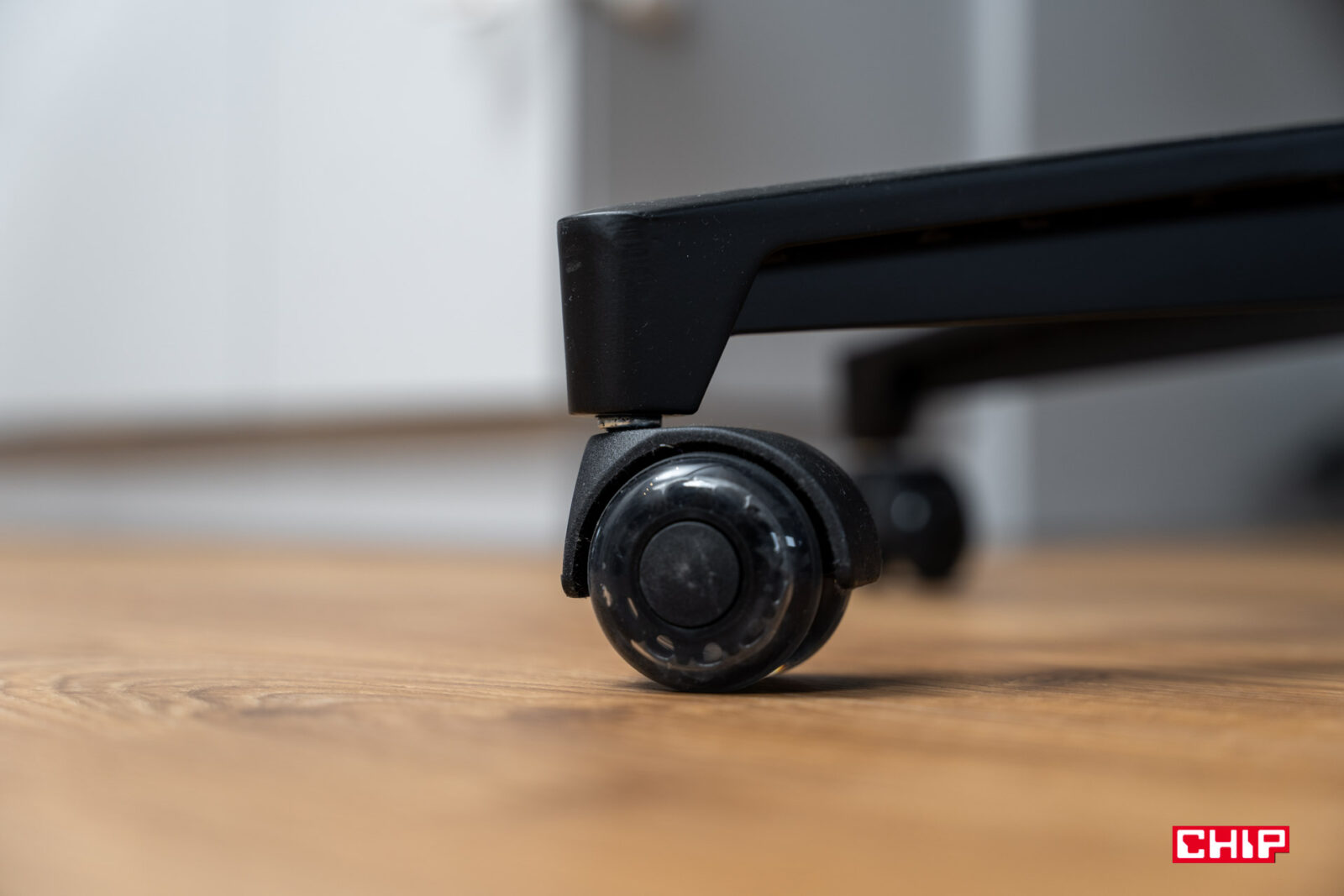 Nie powiedzieliśmy sobie o jednym bardzo ważnym elementem Yumisu – kółkach. Nie byle jakich, bo kauczukowych. Zapewnienia producenta o tym, że są bardzo ciche nie są rzucane na wyrost. Są faktycznie niemal bezszelestne, a przy tym miękkie, więc nie niszczą podłogi. Chociaż mimo wszystko polecałbym trzymanie fotela na jakimś dywanie czy wykładzinie, bo kółka poruszają się bardzo lekko i na twardej powierzchni może to niektórym przeszkadzać, bo fotel jest bardzo łatwo przesunąć.