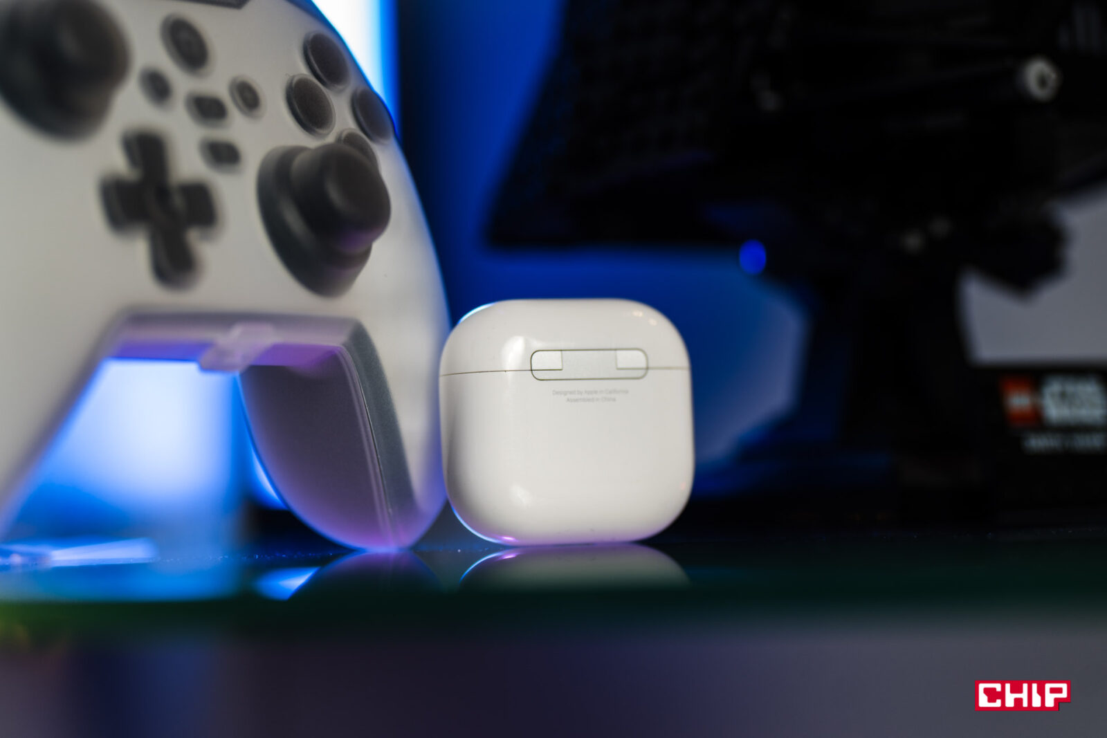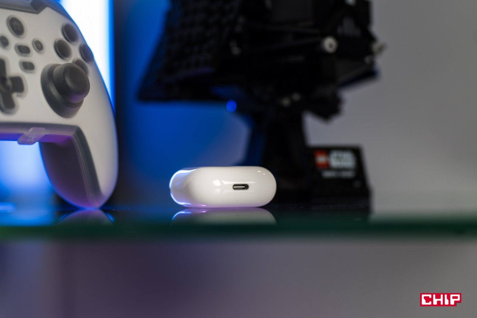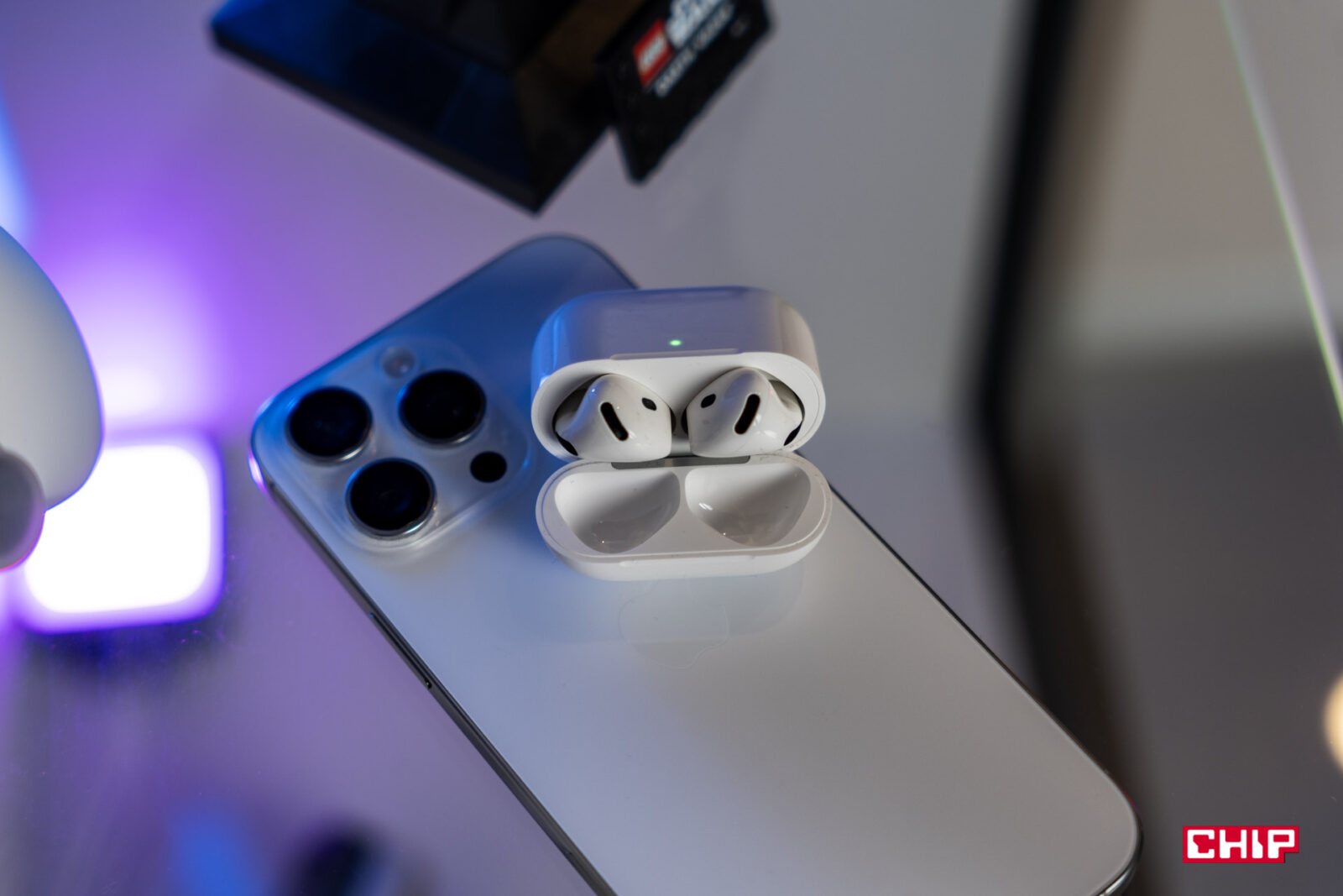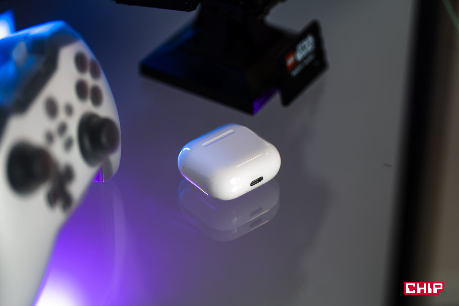 Zmieniło się również etui ładujące. To jest teraz o 10 procent mniejsze od poprzedniej generacji (ma zaledwie 50 mm szerokości), a na dole znajdziemy nie Lightning, a złącze USB‑C — od roku norma, ale nadal bardzo cieszy. Jest również kilka zmian kosmetycznych, które jednak bardzo przypadły mi do gustu. Dioda, znajdująca się na froncie etui, informująca nas o stanie naładowania baterii, nie rzuca się już w oczy z daleka. Nie mamy już wiecznie szarej kropki na środku etui, jak to było do tej pory — teraz dioda jest elegancko schowana pod obudową. Dzięki temu światło ładnie się rozprasza, kiedy otwieramy etui, ale w ogóle jej nie widać, kiedy to jest zamknięte. Mały, lecz ważny szczegół.