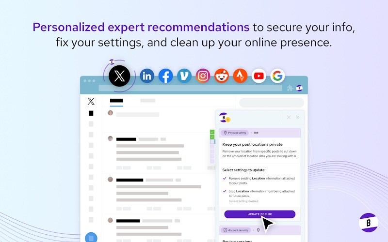 Block Party ma postać wtyczki do przeglądarki internetowej (Chrome, Firefox, oraz Edge), której zadaniem jest wyczyszczenie wrażliwych punktów wejścia dla potencjalnych napastników w popularnych serwisach społecznościowych. Na liście obsługiwanych platform znajdziemy aż dziewięć pozycji, w tym tak znane jak Facebook, Instagram, X (dawny Twitter), a także LinkedIn, YouTube oraz Reddit. Narzędzie działa w sposób zbliżony do skanera antywirusowego – analizuje podłączone konta social media i umieszczone w nich treści, a następnie pozwala je łatwo schować/usuwać i podpowiada zmiany w ustawieniach. A do czego możemy się dzięki Block Party dokopać?