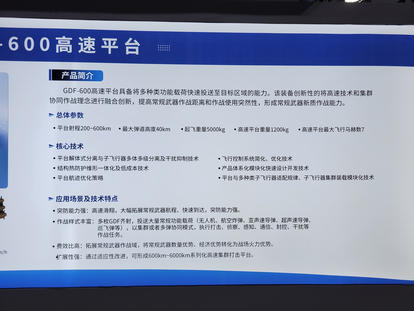 Wspomniane we wstępie pociski, to oczywiście pociski hipersoniczne, które wyróżniają się względem innych przede wszystkim zdolnością do rozwijania prędkości powyżej 5 Mach nie tylko w ostatniej fazie lotu, ale przede wszystkim podczas zmierzania do celu. W połączeniu z zaawansowanymi możliwościami w zakresie manewrowania, lotem po wypłaszczonej trajektorii i swoimi cechami stealth związanymi z m.in. generowaniem plazmy podczas lotu, takie pociski są trudne do wykrycia i jeszcze trudniejsze do zestrzelenia. Aktualnie wyróżniamy trzy główne rodzaje tych pocisków hipersonicznych, wśród których znajdują się pojazdy szybujące i to właśnie do nich zalicza się GDF-600.