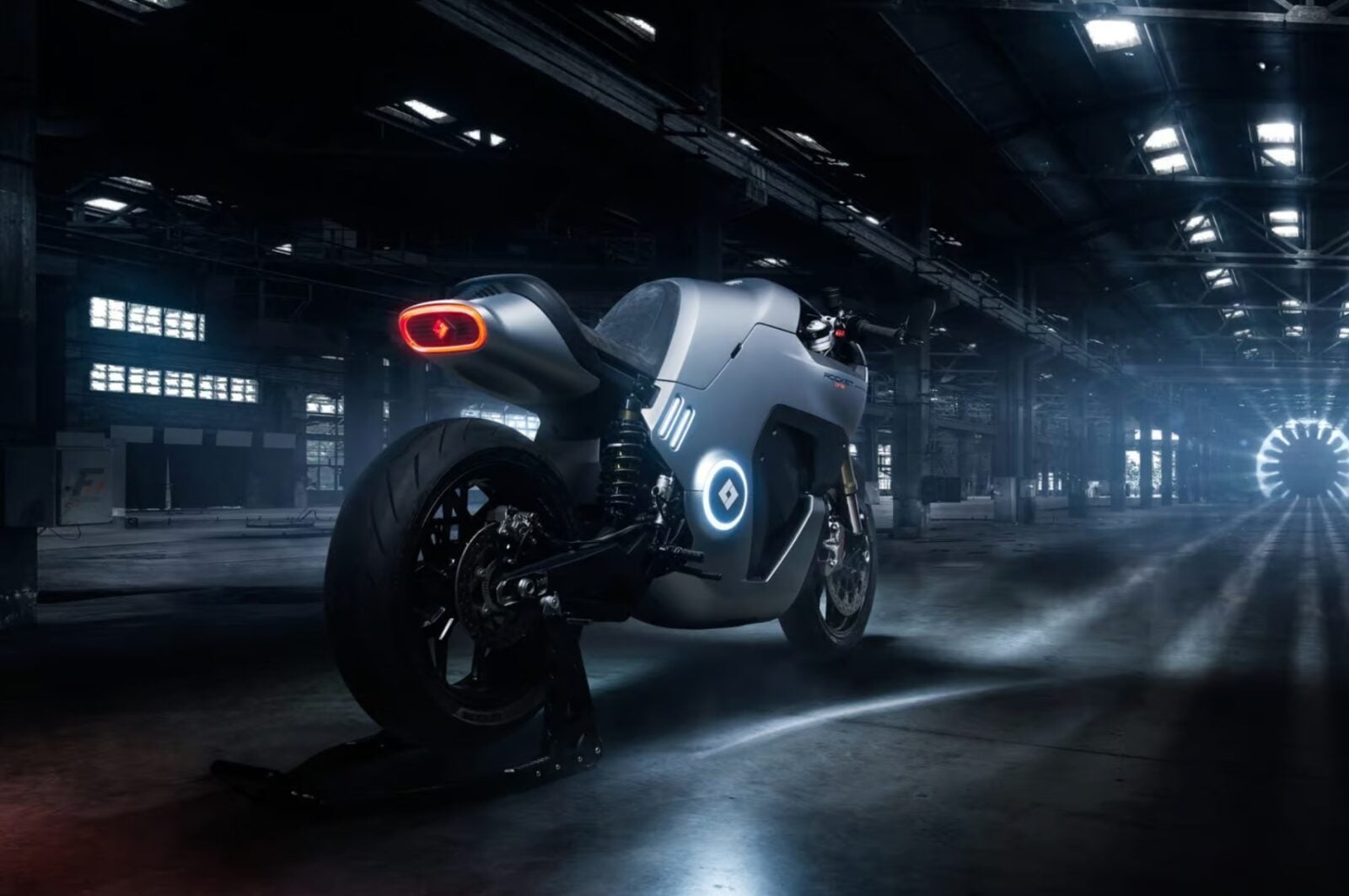 Rocket One wyróżnia się też świecącymi motywami na obudowie, czy osprzętem z wysokiej półki, co widać m.in. po obecności zacisków Brembo na tarczach hamulcowych. Trudno dziwić się temu, że firma postawiła na ponadprzeciętne hamulce, bo ten elektryczny motocykl dzierży system napędowy o wręcz przerażających możliwościach. Jego akumulator na jednym ładowaniu ma zapewniać zasięg do 400 kilometrów, zasilając potężną jednostkę napędową, która generuje 180 koni mechanicznych mocy, a do tego moment obrotowy na poziomie 1200 Nm, umożliwiając sprint do prawie setki w zaledwie ~2,6 sekundy.