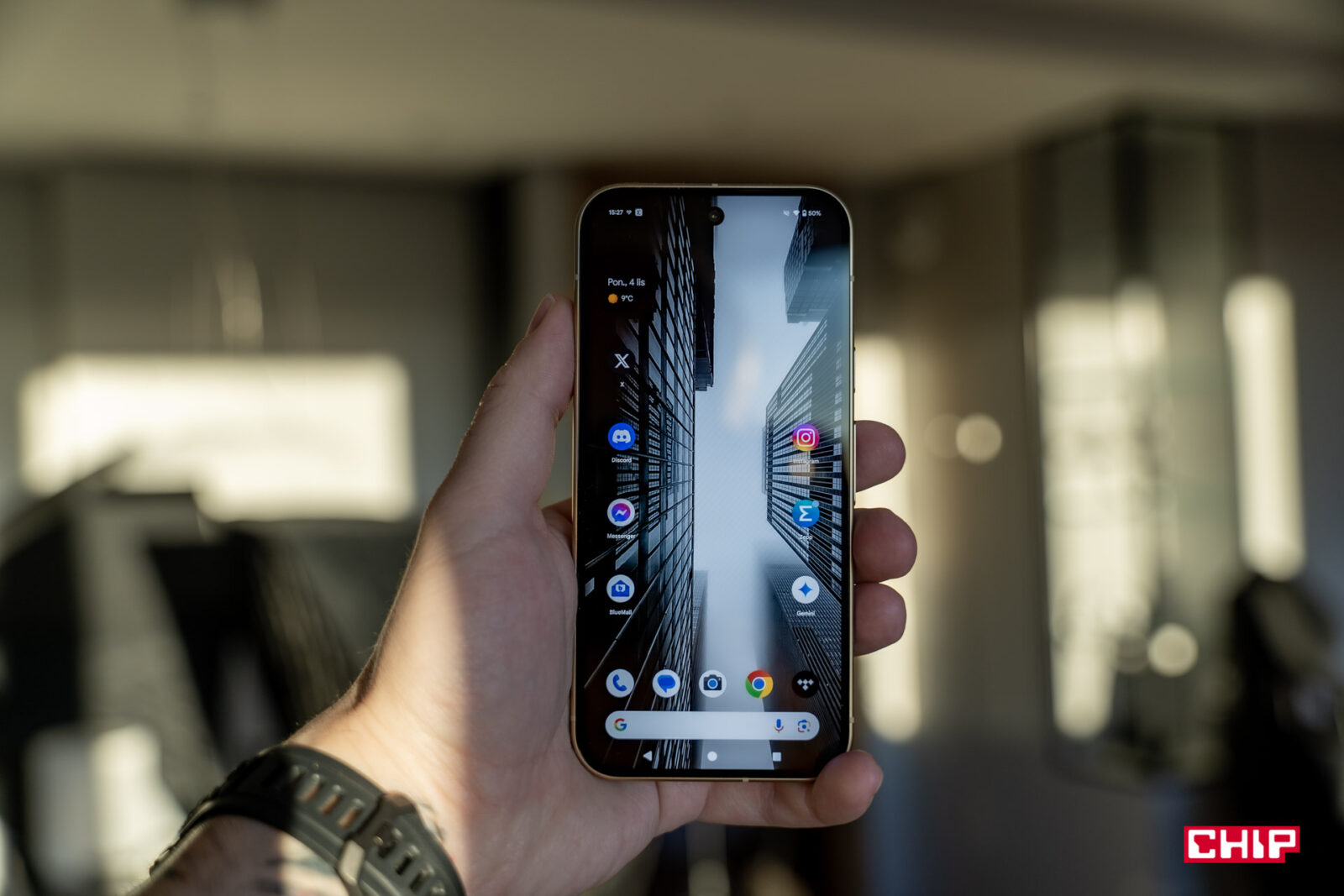 Wyświetlacz jest faktycznie jaśniejszy i ogólnie bardzo jasny. To pierwsze, co od razu dosłownie rzuca się w oczy. Posiłkując się pomiarami serwisu GSMArena, maksymalna jasność w trybie automatycznym przekracza 2200 nitów, co jest świetnym wynikiem, jednym z najlepszych na rynku. Z jedną rzecz Google jednak się nie uporał i jest to fatalne zarządzanie automatyczną jasnością. Ekran reaguje wolno na zmiany otoczenia. Po wyjęciu go z kieszeni poza domem potrzebuje chwili aż załapie, że dookoła jest bardzo jasno. To od zawsze był problem Pixeli i to się nie zmieniło. Apple jest pod tym względem daleko z przodu.