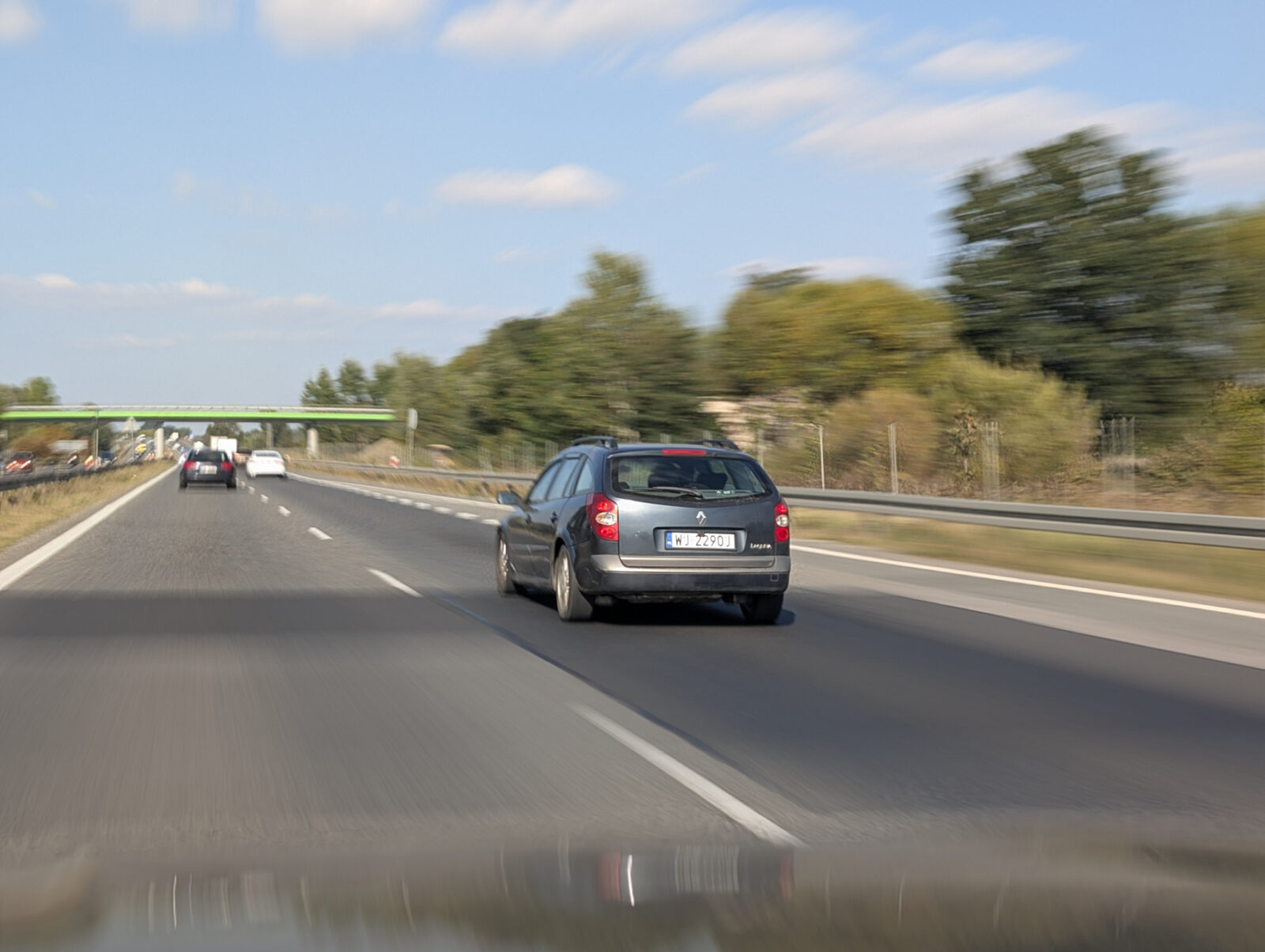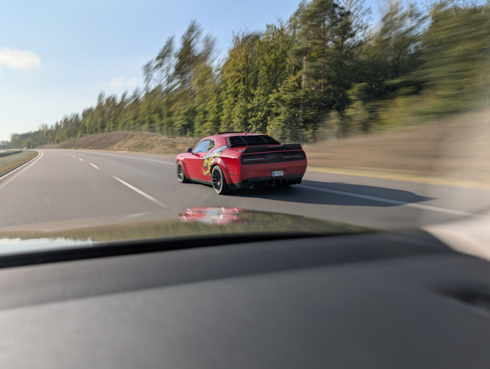 Jest jeden tryb, w którym ingerencja algorytmów jest bardzo duża i jest to tryb zdjęć w ruchu. Idealne do fotografowania samochodów. Pixel 9 robi zdjęcie, a następnie dodaje mu efekt wykonania go z niższym czasem naświetlania, co rozmywa tło i dodaje dynamiki ujęciu. Wygląda to trochę jak magia i pokażę Wam to na prostym przykładzie. Żeby wykonać takie zdjęcia, muszę dobrać odpowiednie parametry aparatu, najlepiej wykonać je z jadącego obok samochodu, w trybie zdjęć seryjnych i ostatecznie na kilkanaście lub nawet kilkadziesiąt ujęć ostre będą maksymalnie 2-3. I wygląda to ostatecznie tak: