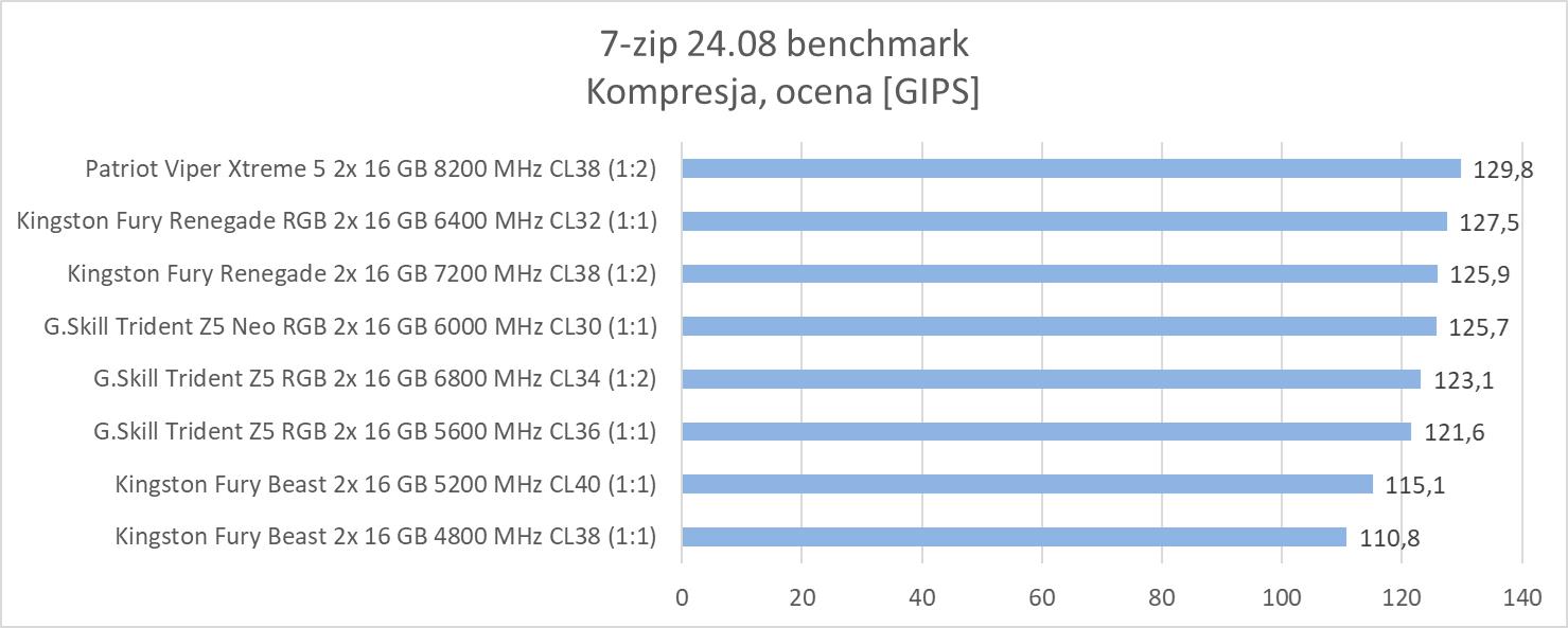 7-Zip to darmowy program do kompresji plików, który jest często wykorzystywany przez użytkowników komputerów. W testach wykorzystaliśmy wbudowany benchmark, który zwara wyniki dla kompresji i dekompresji.