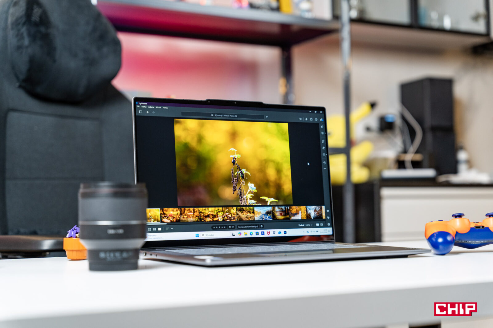 Jeśli chodzi o pracę kreatywną to… zależy. Edycja zdjęć w Adobe Lightroom (przy zakupie laptopa mamy 2 miesiące dostępu do Adobe Creative Cloud za darmo) jest na ogół wygodna. Nie ma problemu z szybkim podglądem zdjęć, działaniem funkcji, laptop nie zawsziesza się przy nakładaniu masek, ale polgł przy najbardziej wymagającym zadaniu, jakim jest odszumianie. Odszumienie pojedynczego zdjęcia trwa 55 sekund, więc słabo na tle sprzętu Apple, który potrzebuje do tego od kilku do kilkunastu sekund, ale z drugiej strony laptopy z Windowsem i Snapdragonem X Plus potrzebują do tego kilkunastu… minut.
